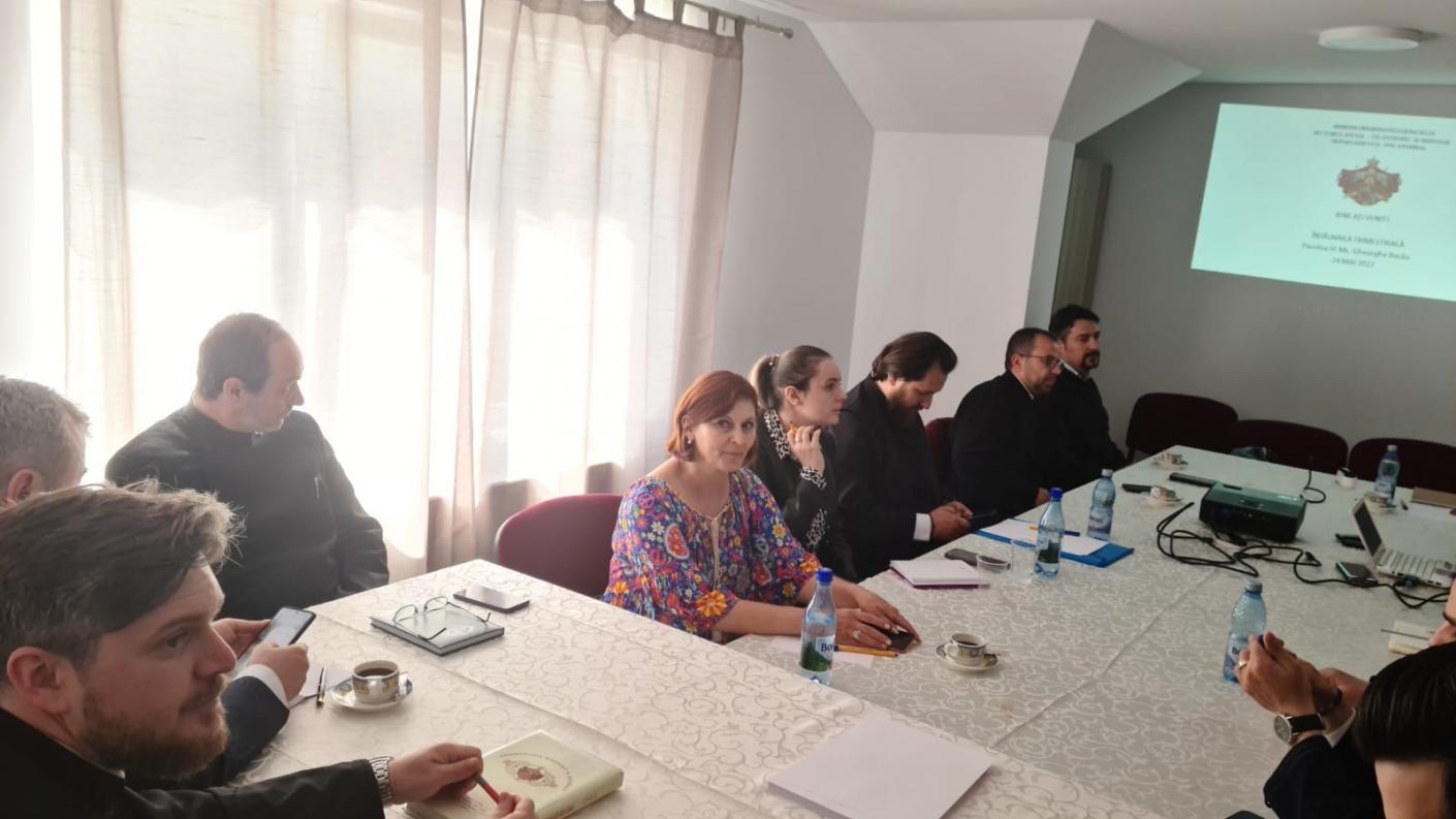 În continuare, participanții, clerici și mireni, s-au reunit în ședință la Centrul cultural „Sf. Ap. Toma” al parohiei băcăuane. Pe agenda întâlnirii organizată marți la Biserica „Sfântul Gheorghe” din Bacău s-au aflat prezentarea strategiei și a proiectelor sociale ale Ministerului Muncii, Familiei și Protecției Sociale și prezentarea programului eparhial Luna Copilăriei. De asemenea, participanții au putut afla de la părintele consilier Ilarion Mâță care sunt obiectivele noilor Departamente din cadrul Sectorului Social-filantropic – Departamentul de acreditare și licențiere și Departamentul de formare misionară continuă. Părintele consilier a adus la cunoștința participanților și informațiile necesare pentru demararea procedurii de licențiere a unui serviciu social. În continuare, la finalul întâlnirii, în cadrul discuțiilor libere s-au făcut următoarele propuneri, care urmează a fi înaintate spre aprobare Permanenței Centrului eparhial, după ce vor primi binecuvântarea chiriarhului: organizarea unei Gale a Asistenței Sociale în Arhiepiscopia Romanului și Bacăului, înființarea unei reviste eparhiale de Asistență socio-medicală și socio-educațională, organizarea de cursuri de formare continuă în domeniul asistenței sociale adresate preoților sau voluntarilor din parohii, instituirea unui fond financiar de întrajutorare destinat ONG-urilor eparhiale.
