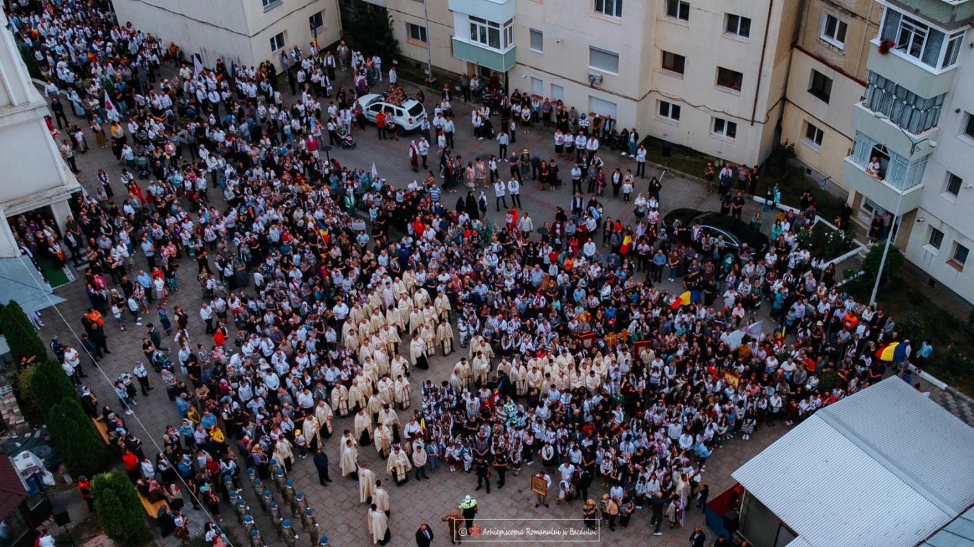 După intonarea imnului României și prezentarea onorului militar, oferit de către garda de onoare a Regimentului Bacău, în piațeta din fața catedralei „Sfântul Nicolae”, Înaltpreasfințitul Părinte Arhiepiscop Ioachim a săvârșit slujba Acatistului Sfinților Brâncoveni și slujba de binecuvântare a copiilor la începutul anului școlar. La finalul acesteia, Înaltpreasfințitul Ioachim a dat citire mesajului alcătuit de către Părintele Patriarh Daniel intitulat „Educația creștină este lumină pentru societate”: