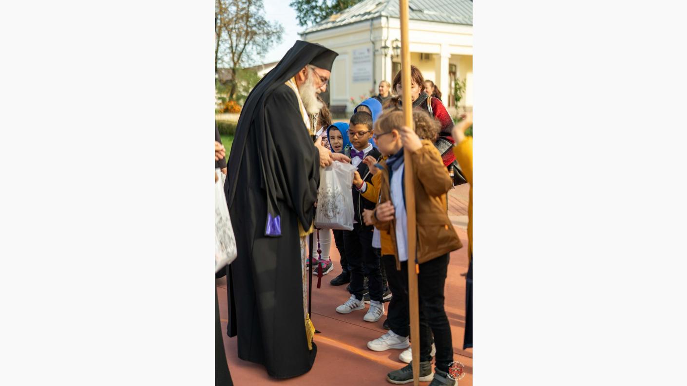 Părintele Arhiepiscop Ioachim a oferit la final dulciuri tuturor copilașilor. După acest moment, monahia Dionisia Șchiopu, director educațional, a ținut un cuvânt de bun venit noilor elevi.