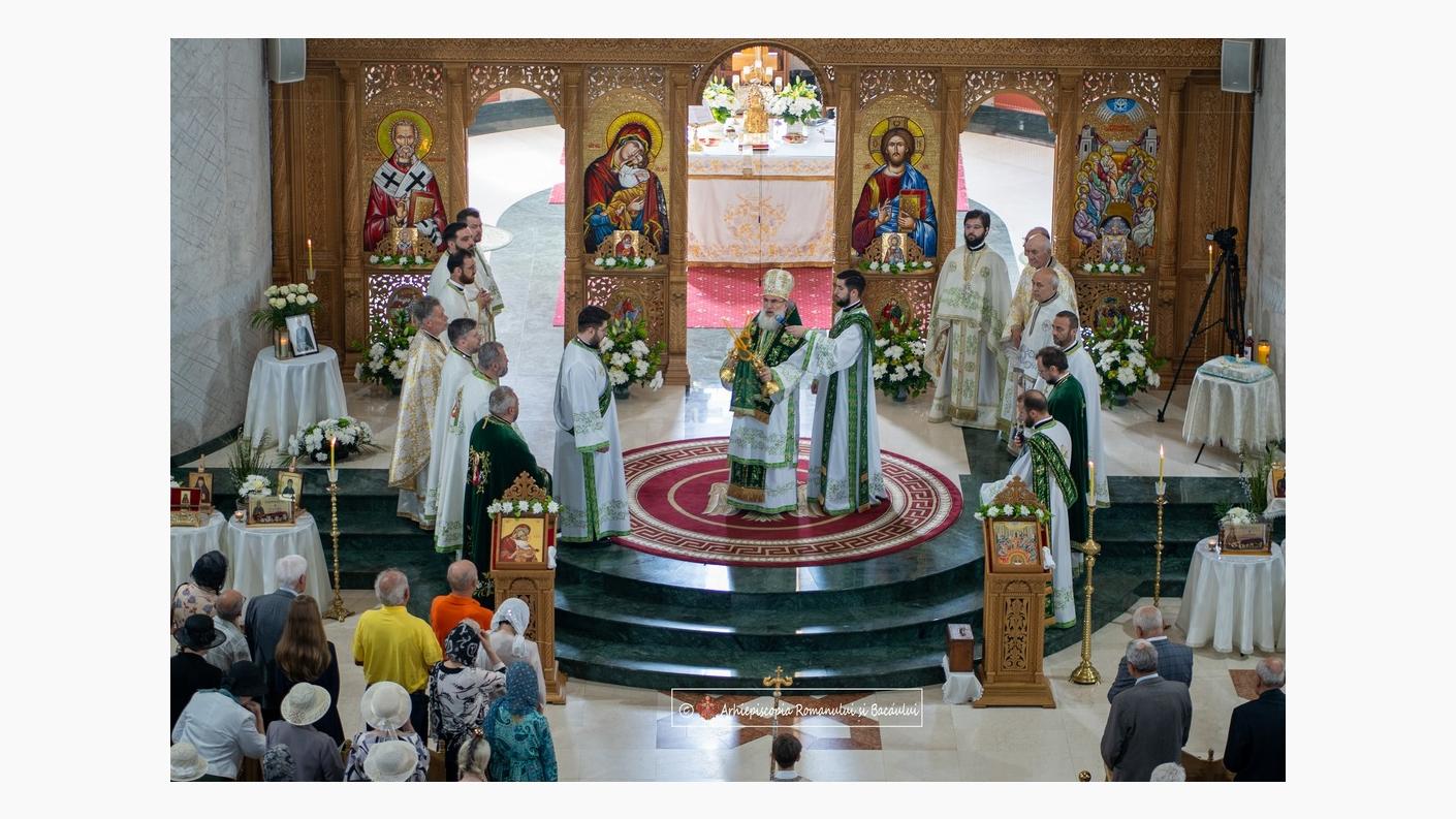 După săvârșirea Vecerniei pentru ziua de luni după Rusalii, care, potrivit rânduielilor tipiconale, se săvârșește în Duminica Cincizecimii, imediat după Dumnezeiasca Liturghie, Înaltpresfințitul Părinte Ioachim a rostit un cuvânt de binecuvântare, în care a explicat importanța marelui praznic al Pogorârii Sfântului Duh pentru creștini, amintind faptul că acesta marchează ziua de naștere a Bisericii din care facem parte, Biserică ce s-a clădit pe învățătura predată de sfinții apostoli și pe sângele martirilor din primele veacuri creștini. Ierarhul a vorbit celor prezenți și despre frumusețea liturgică a Vecerniei, care are o rânduială aparte și în care ne rugăm și pentru cei adormiți din veac, părinți și frați ai noștri, îndemnându-i pe credincioși să păstreze, prin Biserică, comuniunea cu cei plecați în veșnicia lui Dumnezeu, veșnicie din care vom gusta cu toții la momentul rânduit. Înaltpresfinția Sa a felicitat pe părintele paroh Justinian Alupei pentru frumoasa organizare a slujbei de hram și pentru lucrarea pastoral - misionară, social - filantropică și administrativ - gospodărească pe care o realizează în inima urbei oneștene, alături de părinții slujitori, Petru Pavăl și Alexandru Pânzaru.
