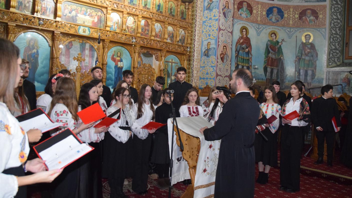 După întâmpinarea Preasfințitului Părinte Teofil Trotușanul, s-au interpretat cântări liturgice, prelucrări după colinde populare, piese specifice genului polifonic, compuse de autori români consacrați, precum și o suită de colinde cu texte scrise de Înaltpreasfințitul Părinte Ioachim. Repertoriul a fost interpretat de cele trei ansambluri corale ale liceului teologic, corul de muzică psaltică „Melozii Romanului”, corul elevelor de la specializarea ghid turism religios, și ansamblul vocal polifonic Laudamus, cărora li s-au alăturat corul Școli Gimnaziale „Mihai Eminescu”, pregătit de d-na profesor Oprea Bianca, și corul parohiei Sf. Împărați Constantin și Elena, un ansamblu muzical cu o continuitate de trei decenii, reprezentând în sine o probă a bunelor practici în pastorație pe care sacerdoții lăcașului de cult ce a găzduit concertul le cultivă cu responsabilitate. Intervențiile corurilor pregătite de pr. Vlad Nicolae Samoilă și arhid. Alexandru Ioan Tecucianu au fost prezentate de moderatorul acestui eveniment, PC Arhim. Nicolae Dănilă, exarh al mănăstirilor din Arhiepiscopia Romanului și Bacăului, care totodată a prezentat succint activitatea și importanța instituțională a liceului teologic romașcan.
