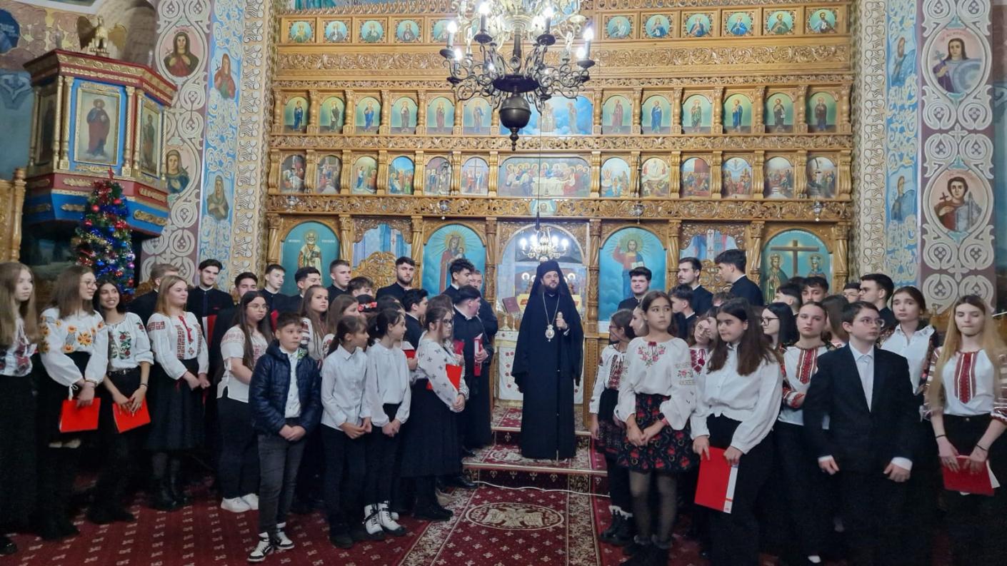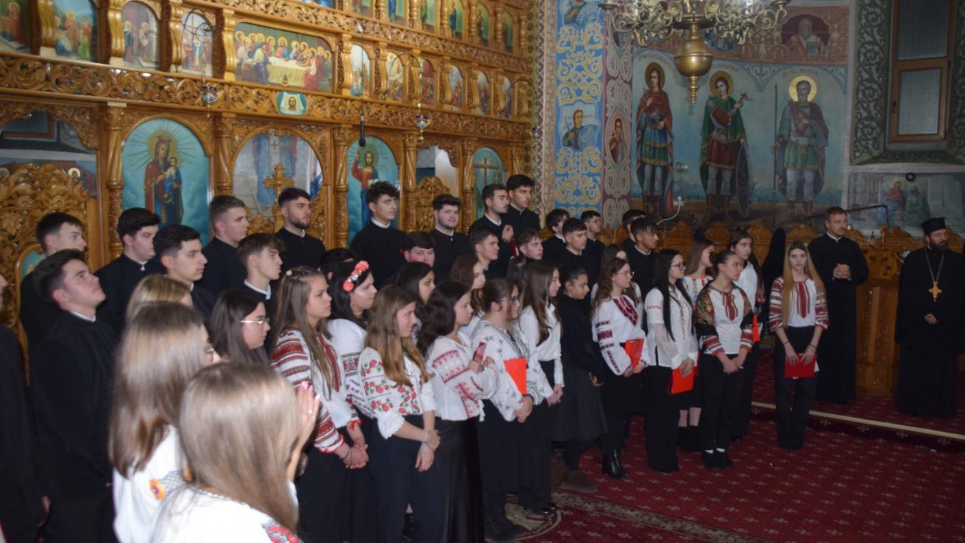 După interpretarea omofonă a tradiționalului colind „O, ce veste minunată!” de către elevii seminariști împreună cu asistența prezentă, Preasfințitul Teofil Trotușanul a binecuvântat pe fiecare dintre cei aproape șaptezeci de colindători, iar preotul paroh al primitorului locaș de cult și reprezentantul unității de învățământ teologic au adus mulțumiri Înaltpreasfințitului Părinte Ioachim pentru binecuvântare, și Preasfințitului Părinte Teofil Trotușanul pentru prezența alături de comunitate și de tineri și pentru buna povățuire oferită cu drag acestora.