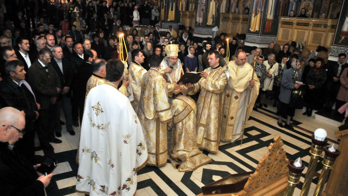 Binecuvântarea arhierească s-a revărsat și asupra credincioșilor băcăuani care au participat la Dumnezeiasca Liturghie oficiată de Înaltpreasfințitul Părinte Arhiepiscop Ioachim în Catedrala ”Înălțarea Domnului” din municipiul Bacău. În cea de-a doua zi a ”Sărbătorii Luminii”, chiriarhul eparhiei Romanului și Bacăului a venit în mijlocul băcăuanilor alături de care s-a rugat, povățuindu-i să se apropie cu evlavie de Mântuitorul nostru Iisus Hristos ”transfigurând chipurile lor în lumini spre luminarea tuturor”. ”Luaţi din lumina lui Hristos şi aşezaţi-o mai întâi în inimile voastre, pentru ca la lumina aceasta să puteţi vedea şi curăţa negura păcatelor care s-a aşezat în cămara propriilor suflete! Apoi invitaţi pe Hristos înviat să lucreze cu voi şi în voi! Faceţi viaţa voastră conformă cu viaţa Lui”, i-a îndemnat Înaltpreasfinția Sa pe băcăuani. Plinătatea Liturghiei a fost împletită cu hitoronia întru diacon a tânărului teolog Dragoș Custură, învestire prin care Înaltpreasfințitul Ioachim a întărit importanța pe care Biserica o acordă tinerilor, ”bogăţia cea mai importantă a unui neam”. În cadrul solemn al comuniunii de rugăciune și în contextul declarării anului 2015 de către Sfântul Sinod al Bisericii Ortodoxe Române ca An comemorativ al marilor personalități ecleziastice din eparhii, Înaltpreasfințitul Părinte Arhiepiscop a făcut și pomenirea episcopului Hușilor, Ioachim Mareș, mutat la Domnul în urmă cu șase ani și care-și doarme somnul de veci într-una din criptele aflate la demisolul Catedralei.