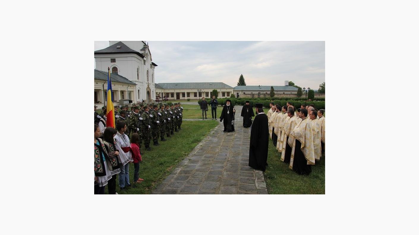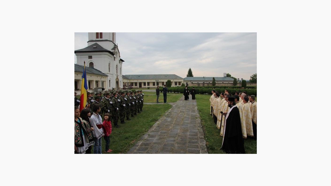 Preoţi şi credincioşi, copii de la Grădinţa Fundaţiei “Episcop Melchisedec”, tineri în costume populare, alături de militari ai Garnizoanei Roman, s-au adunat astăzi, 26 iunie, începând cu ora 11.00, în incinta Centrul eparhial Roman, pentru a participa la slujba de binecuvântare a drapelului naţional şi de sfinţire a drapelului Eparhiei Romanului şi Bacăului, oficiată de Înaltpreasfinţitul Părinte Arhiepiscop Ioachim. Într-o atmosferă încărcată de solemnitate şi grandoare spirituală, toţi cei prezenţi şi-au plecat genunchii la rugăciunile rostite de ierarh pentru ocrotirea poporului român şi pentru sfinţirea drapelului acestei străvechi eparhii care înfăţişează pe o pânză albă, brodată, icoana Sfintei Cuvioase Parascheva, şezând pe tron, aşa cum apare reprezentată în fresca din Catedrala Arhiepiscopală din Roman. “Doamne, Dumnezeul nostru, Atotputenice, Făcătorule a toată făptura, Ziditorule a toată lumea şi binecuvântarea a toată făptura, caută cu ochiul Tău cel îndurat asupra noastră, a smeriţilor şi nevrednicilor Tăi slujitori, ascultă rugăciunea noastră, în această sfântă zi când prezentăm ca ofrandă Drapelul acestei de Dumnezeu păzite eparhii, şi caută cu milostivire şi iubire de oameni asupra fiilor şi ficelor duhovniceşti încredinţaţi nouă spre păstorire. Binecuvintează şi sfinţeşte Drapelul acesta, ca să fie poporului nostru cel bine credincios ca semn identităţii şi apartenenţei la Biserica dreptmăritoare a neamului nostru românesc”, s-a rugat ierarhul Romanului şi Bacăului.