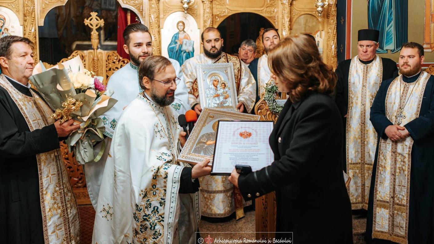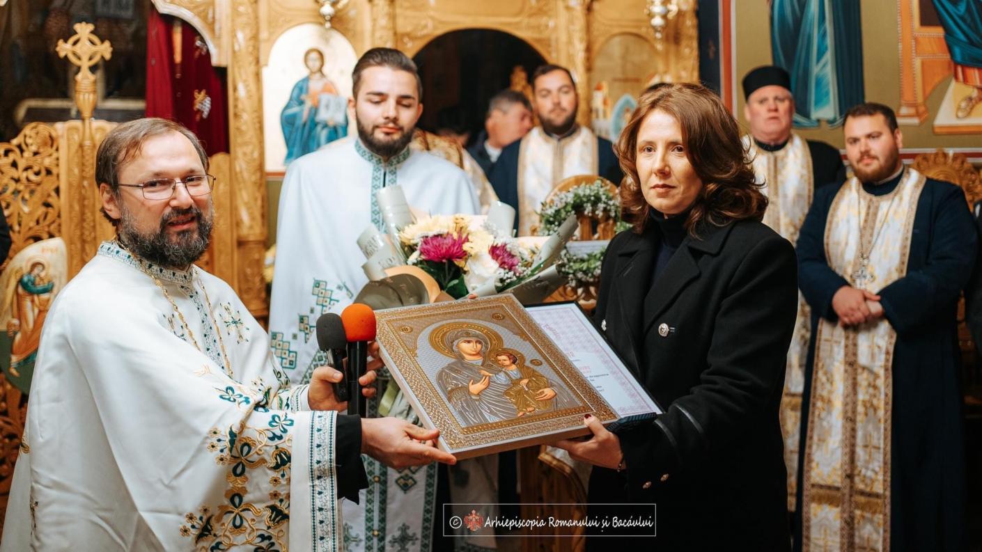 Pentru toată dragostea arătată față de Sfânta Biserică și pentru contribuția acordată lucrărilor de construcție a clopotniței și de renovare a exteriorului lăcașului de cult, doamna Cristina Breahnă-Pravăț, președinte al Consiliului Județean Bacău, și domnul Ion Pravăț, primar al comunei Valea Seacă, au primit din partea Înaltpreasfințitului Părinte Arhiepiscop Ioachim câte o diplomă de vrednicie, ca semn al prețuirii și binecuvântării arhierești.