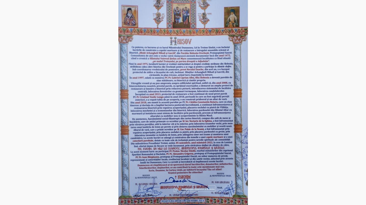 Credincioșii Parohiei “Sf. Arhangheli Mihail și Gavriil” din localitatea Slobozia au primit sâmbătă, 5 noiembrie, vizita Înaltpreasfințitului Părinte Ioachim, Arhiepiscopul Romanului și Bacăului. Ierarhul a binecuvântat Altarul de vară al parohiei, noua capelă mortuară, casa praznicală și noul oficiu parohial.