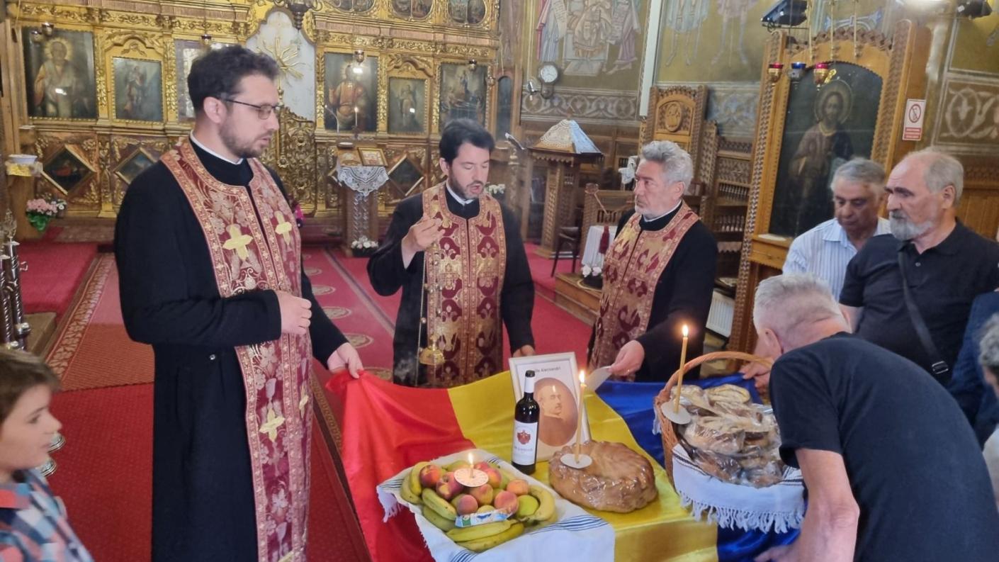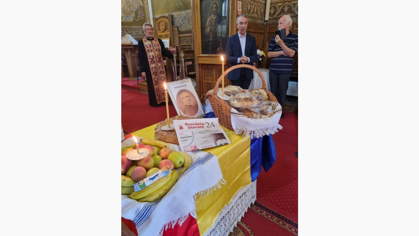 După slujba de pomenire săvârșită de către slujitorii parohiei, pr. paroh Mihail Tomozei a adresat câteva cuvinte de bun venit invitaților, reamintind că Vasile Alecsandri este fiul duhovnicesc al Bisericii Precista și o mare personalitate a Bacăului, iubitor de limbă română, patriot și om de cultură, de aceea trebuie să-I cinstim cum se cuvine.