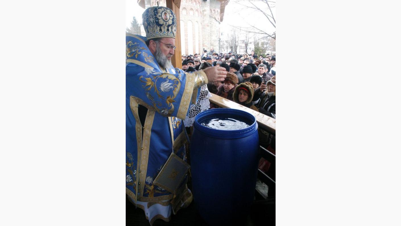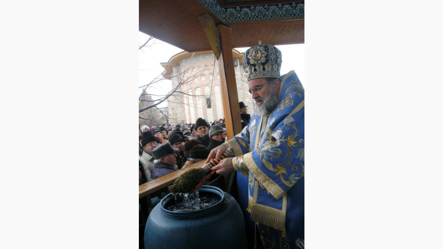 PS Ioachim Băcăuanul, Episcop-vicar al Arhiepiscopiei Romanului şi Bacăului, a oficiat astăzi Sfânta Liturghie şi sfinţirea cea mare a apei la Biserica Precista din Bacău. Preasfinţia Sa a fost întâmpinat în faţa sfântului lăcaş de soborul de preoţi şi de credincioşi, fiind intonat imnul arhieresc.
