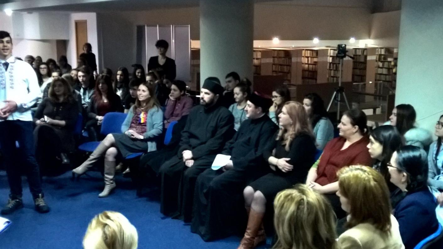 La Biblioteca Județeană ”C. Sturdza” din Bacău a avut loc astăzi, 13 ianuarie, manifestarea ”Eminescu și școala românească”, la care au participat profesori universitari, preoți, profesori din ciclul gimnazial și liceal, bibliotecari și numeroși elevi. Delegați din partea Înaltpreasfințitului Părinte Arhiepiscop Ioachim au fost preotul Costică Busuioc, protopop de Bacău, și preot Constantin Gherasim, inspector eparhial.