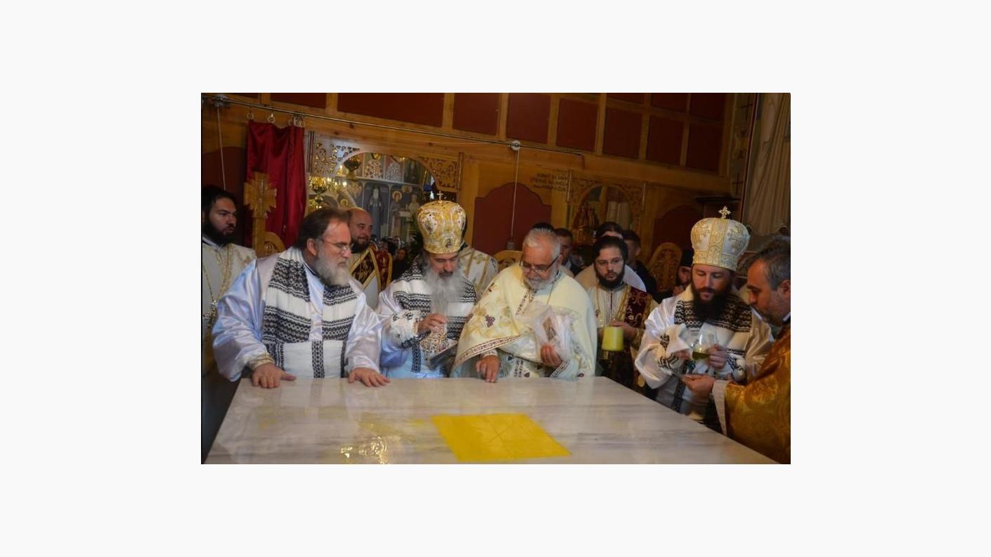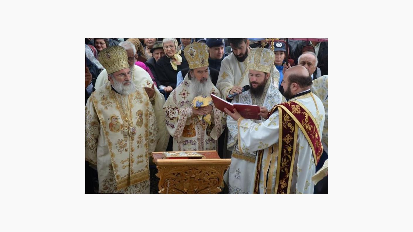 Ca o încununare a tuturor lucrărilor săvârşite în cei 14 ani, slujba de sfinţire a fost urmată de Sfânta Liturghie, săvârşită pe un podium special amenajat în vecinătatea noii biserici de către Înaltpreasfinţitul Părinte Teodosie, Arhiepiscopul Tomisului, Înaltpreasfinţitul Părinte Ioachim, Arhiepiscopul Romanului şi Bacăului, și Preasfinţitul Părinte Damaschin Dorneanul, Episop Vicar al Arhiepiscopiei Sucevei şi Rădăuţilor, alături de un sobor de preoţi şi diaconi.