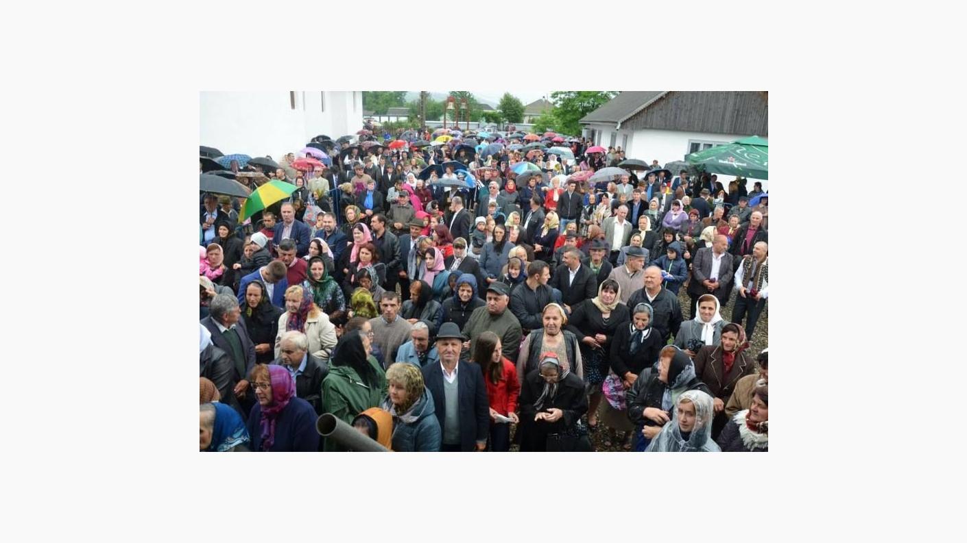 Pe la primele ore ale dimineţii, grupuri de credincioşi de prin satele şi oraşele vecine, alături de membri ai autorităţilor locale şi judeţene, au venit pentru a lua parte la evenimentul pe care îl aşteptau de atâţia ani. Tradiţionalei primiri în straie tradiționale și sunet de clopot i-a urmat slujba de sfinţire, prin ungere cu Sfântul şi Marele Mir şi prin stropire cu apă sfinţită, mai întâi la exterior şi continuând în interior cu târnosirea Sfintei Mese şi a veşmântului iconografic al locaşului de cult.