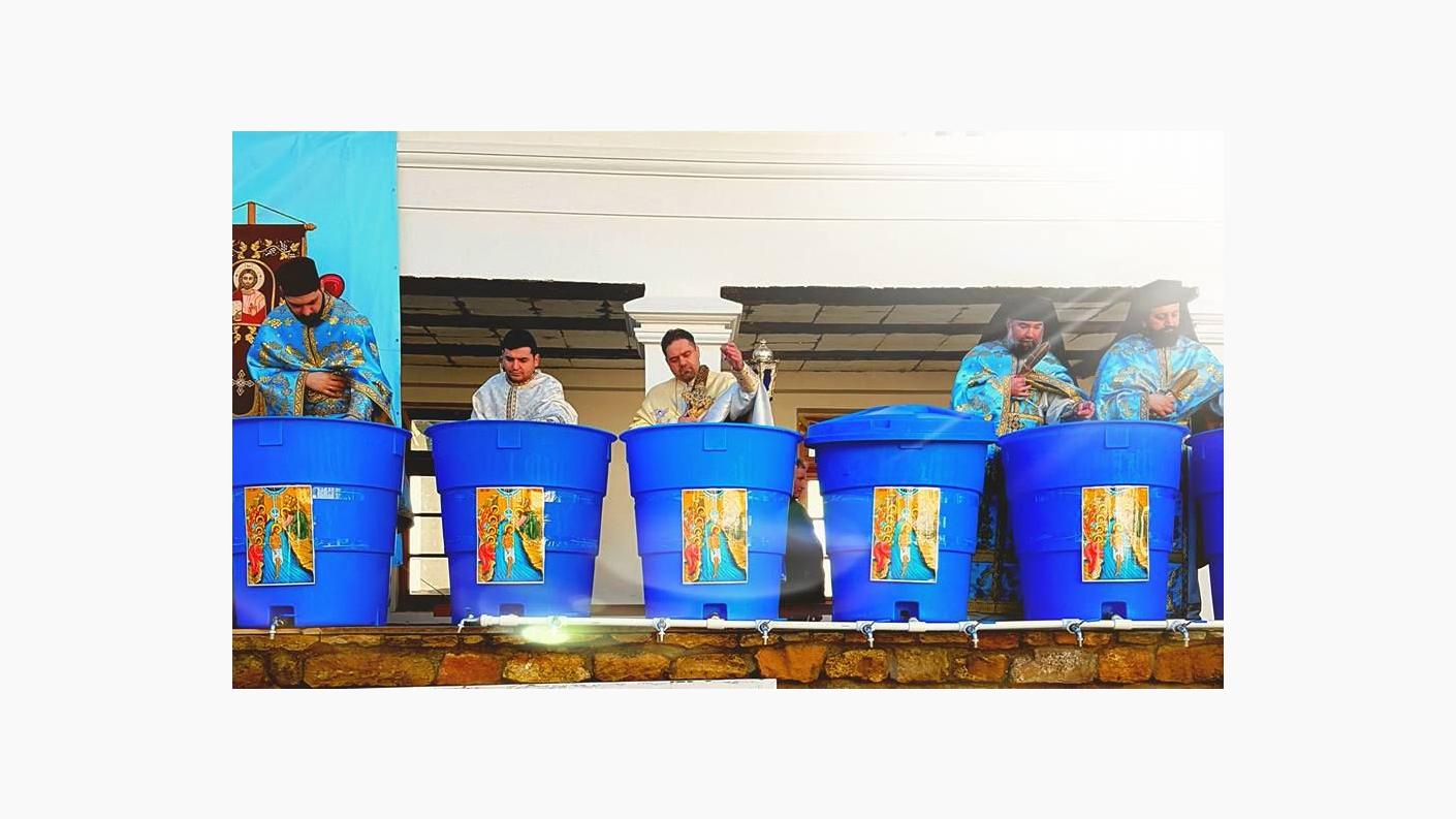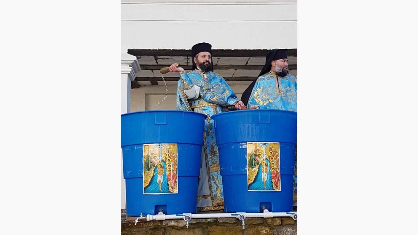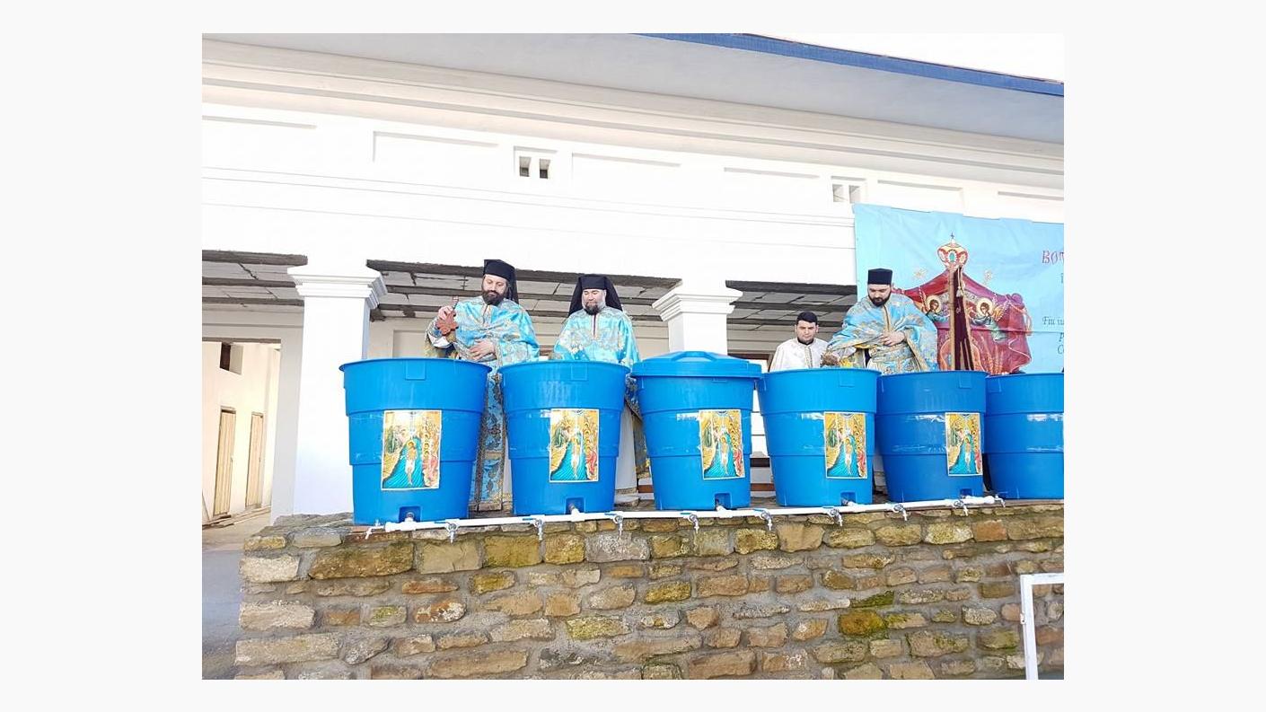 După oficierea Liturghiei, a urmat slujba Sfințirii celei Mari a apei, la finele căreia părintele Vicar Eparhial Pimen Costea, a eliberat în mod simbolic un porumbel alb. Porumbelul, în tradiția ortodoxă, simbolizează prezența sfințitoare peste firea apelor și a întregii creații a Sfântului Duh.