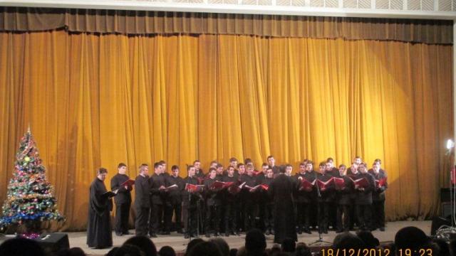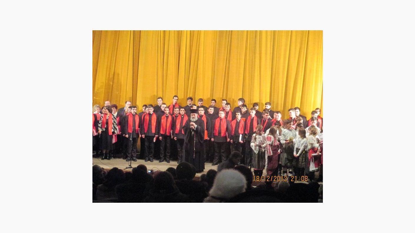 Cu binecuvântarea și în prezența Preasfințitului Ioachim Băcăuanul, marți, 18 decembrie 2012, sala de spectacole a Casei de Cultură Roman a găzduit, începând cu ora 17, un concert de colinde susținut de elevii de la Liceul Teologic Ortodox “Episcop Melchisedec Ștefănescu” și Liceul Teologic Romano-Catolic “Sfântul Francisc de Assisi”. Manifestarea a stârnit interesul romașcanilor, care au participat și în acest an într-un număr impresionant, sala arătându-se neăncăpătoare,la un eveniment menit să le încălzească sufletele si inimile, acum în preajma Sfintelor Sarbatori ale Nașterii Domnului. Au urcat pe scenă corurile “Melozii Romanului”, dirijat de pretul profesor Ionuț Amărinii, Corul “Laudamus”, al Liceului Teologic Ortodox, condus de tanarul teolog Ionuț Vălcu, Corul mixt al Catedralei Arhiepiscopiei Romanului și Bacăului, condus de același Ionuț Vâlcu, dar și corul “Schola cantorum”, al Liceului Teologic Romano-Catolic “Sfântul Francisc de Assisi”, condus de preotul profesor Cristian Dumea.