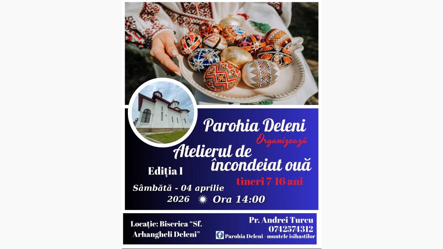 Cu binecuvântarea Înaltpreasfințitului Părinte Ioachim, Arhiepiscopul Romanului și Bacăului, în Parohia Deleni, Protopopiatul Onești, a debutat în data de 4 aprilie un frumos și folositor proiect dedicat copiilor: „Atelierul de încondeiat ouă”.
