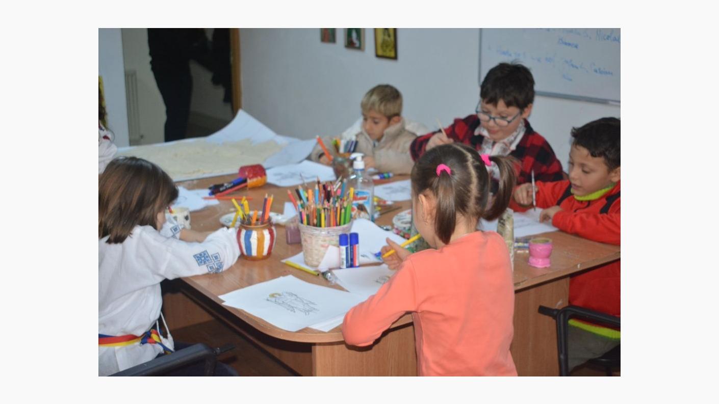 Reîntorși la Centru copiii au continuat servind batrânii și întreg personalul cu frișca tricolor, lucrată de ei, continuând cu activități pe ateliere: lut și pictură pe lut, lumânări multicolore, macheta țării noastre, harta țării pe perete cu orașele importante, iar pentru cei mai mici fiind rezervat un spațiu pentru desene pe tema zilei naționale.
