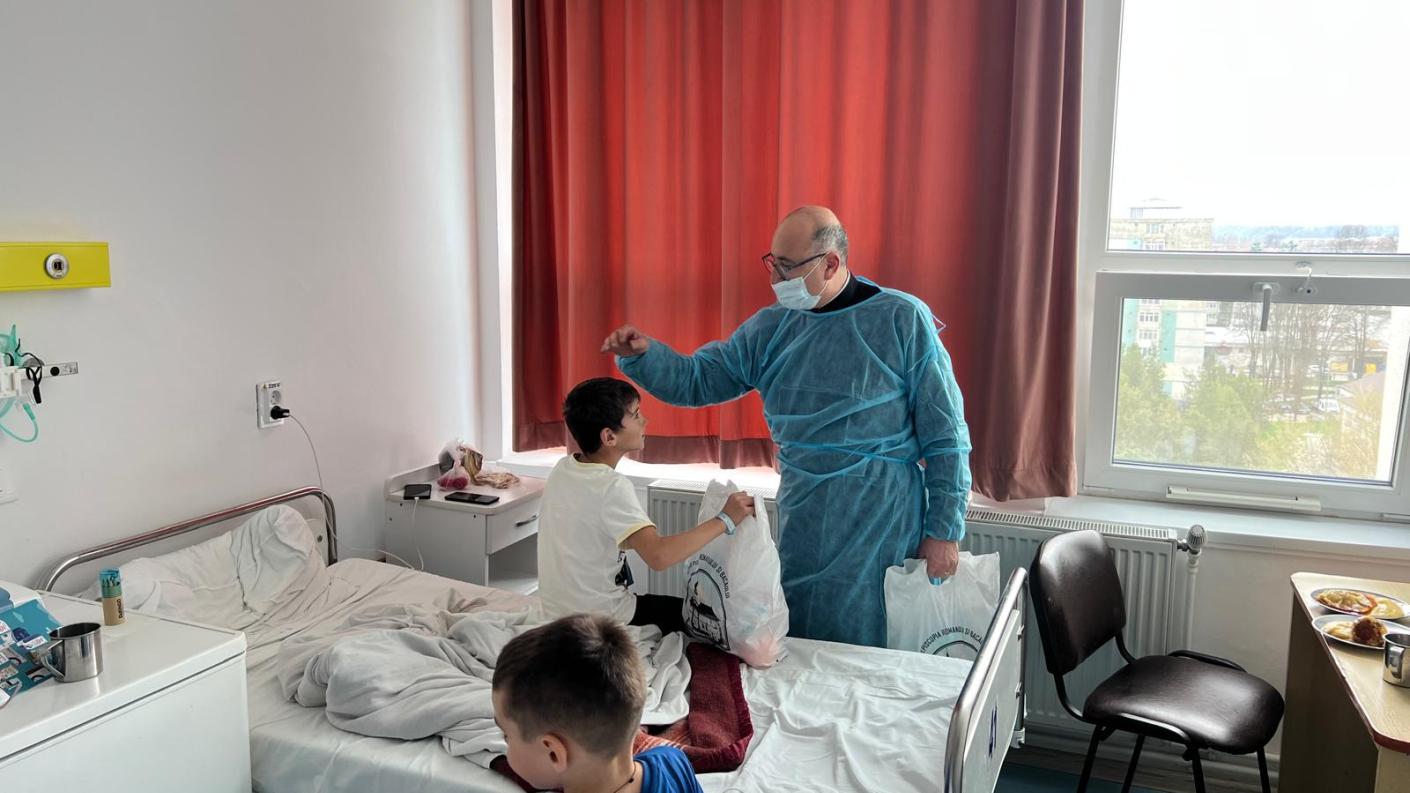 Cei doi preoți slujitori ai instituției, părintele Cuibar Petrica și părintele Pricaz Samuel, au vizitat secția de Pediatrie, unde au oferit pachete copiilor internați, dar și cuvinte de încurajare, rugăciune și binecuvântare. În duh pascal, gestul s-a dorit să fie o mărturie vie a iubirii milostive a lui Hristos Cel Înviat, Care Se face prezent în fiecare faptă de bunătate și în fiecare inimă deschisă spre aproapele.
