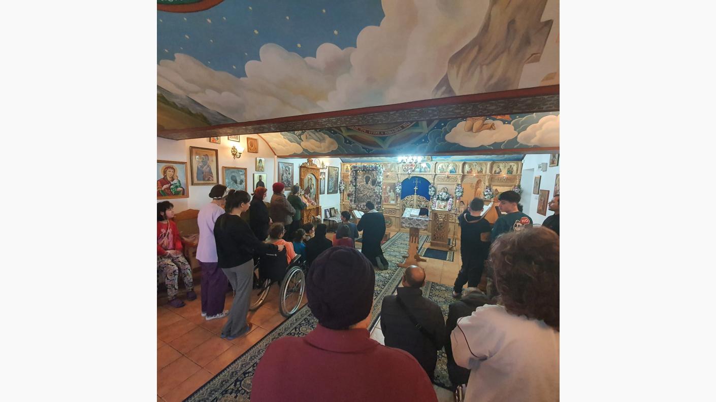 În după amiaza aceleiași zile, începând cu ora 17.00, copiii centrului au participat la slujba Acatistului „Maicii Domnului - bucuria tuturor celor necăjiți”. La final, aceștia au adus cântări de slavă Maicii Domnului, iar mai apoi, sub grija părintelui slujitor, au fost îndemnați să formuleze fiecare câte o rugăciune către Preasfânta Născătoare de Dumnezeu. Aceste rugăciuni ale lor au impresionat prin simplitatea, spontaneitatea și curățenia lor.