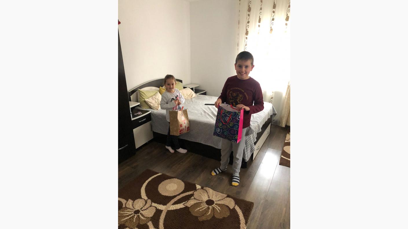 Copiii au mai primit și ghetuțe din partea domnului Cornel Iftimie din localitatea Măgura, județul Bacău, acesta oferind ghetuțe atât copiilor beneficiari, cât și copiilor angajaților centrului rezidențial pentru persoane vârstnice Hârja.