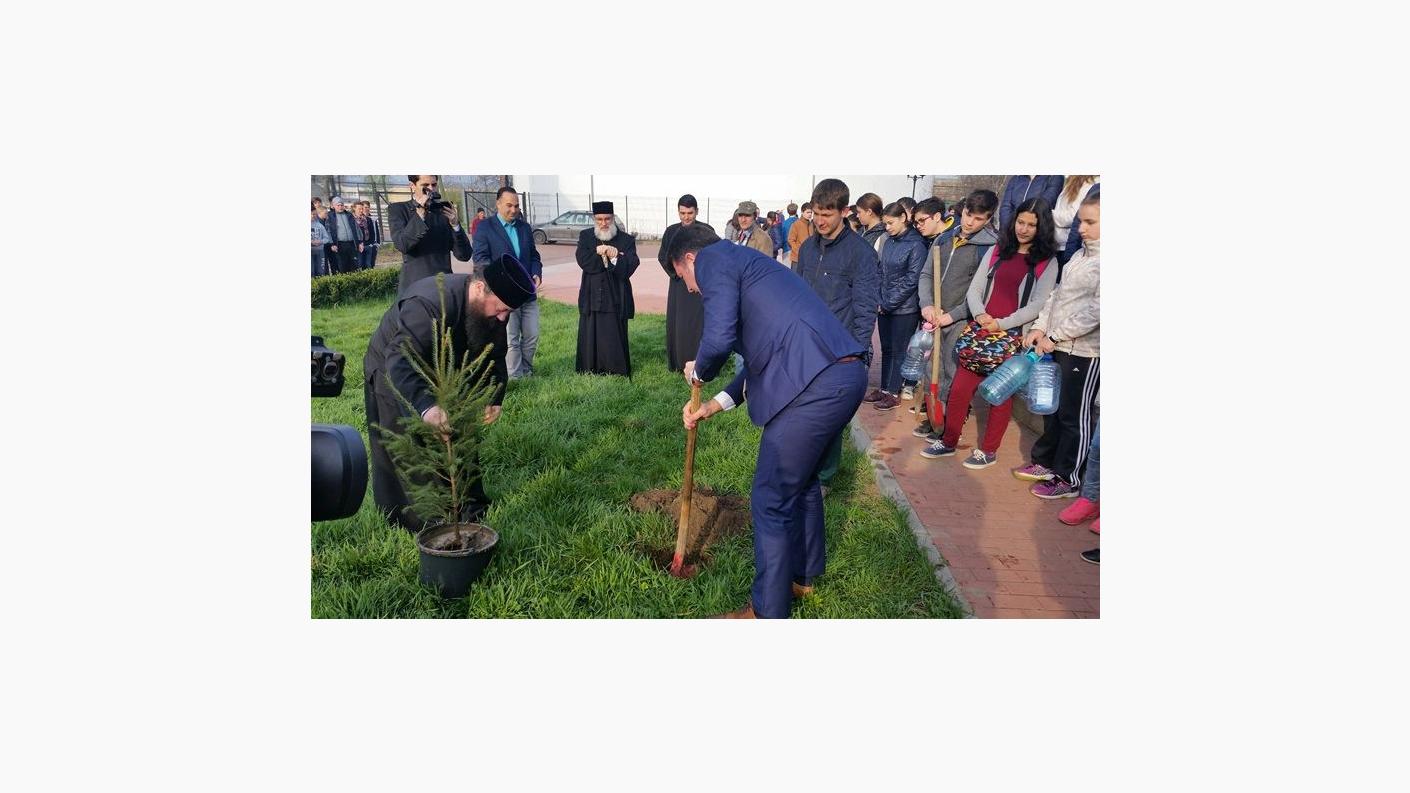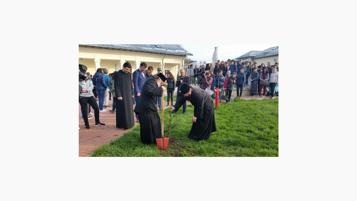 Aceștia din urmă, începând cu ora 08.00, pregătiți cu toate cele necesare, s-au întâlnit în curtea Fundației „Episcop Melchisedec” pentru a primi puieții de molid destinați plantării în locațiile stabilite de municipalitate. De asemenea, toți cei prezenți au primit binecuvântarea ierarhului și un cuvânt ziditor de suflet destinat acestui eveniment. Cele două oficialități prezente au plantat câte un puiet de molid în curtea fundației oferind astfel un exemplu celor prezenți și marcând, prin aceasta începutul acestei campanii.