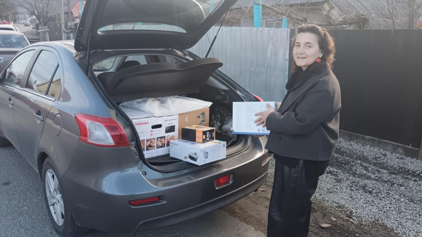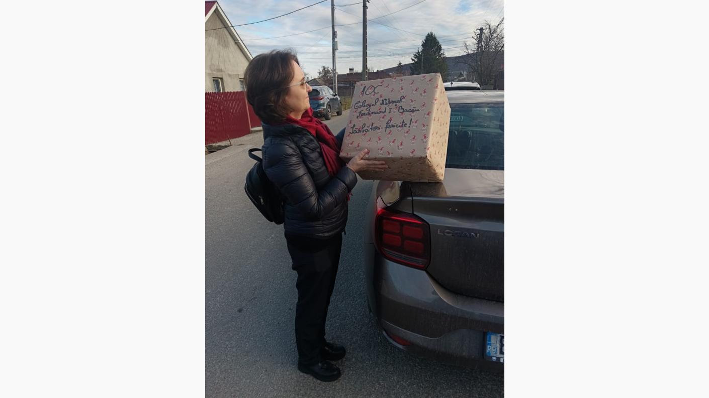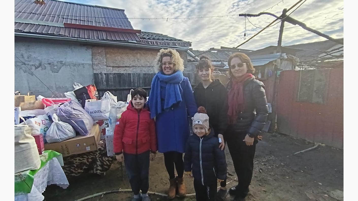 Reprezentații unităților de învățământ alături de responsabilul proiectului, prof. Anamaria Domnina Gînju, s-au deplasat în data de 18 decembrie la locuința familiei dăruind o colectă generoasă constând în produse electrocasnice (aspirator, aerotermă, radio portabil, fierbător, uscător de păr, cuptor cu microunde, instalație de brad), pături, pilotă, lenjerie de pat, haine și încălțăminte pentru copii, produse de igienă, produse alimentare, rechizite, carne, fructe și dulciuri. Pe lângă colecta donată din partea Colegiului Ferdinand, doamna profesoară Irina Dromereschi a dăruit familiei o icoană de argint ca protecție a casei și un frumos aranjament floral de Crăciun.