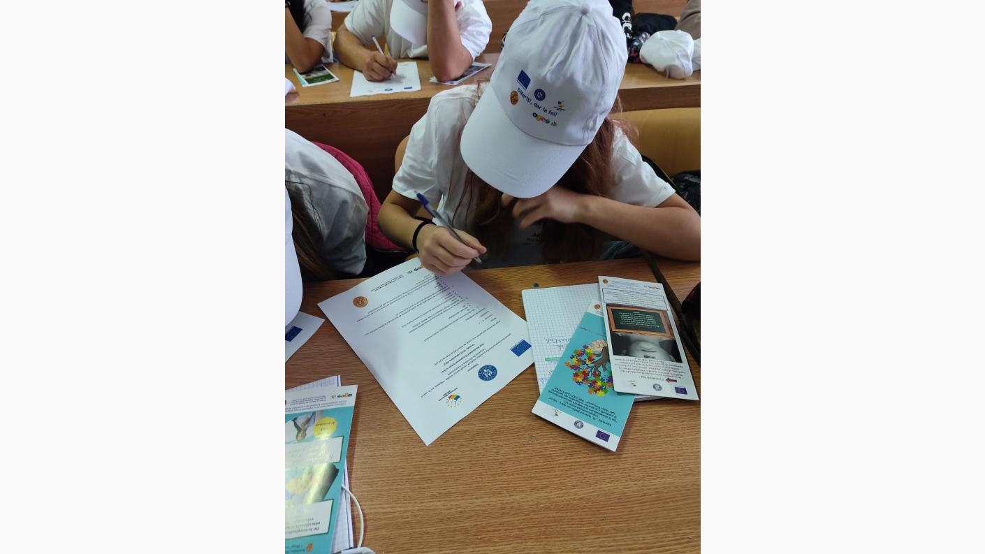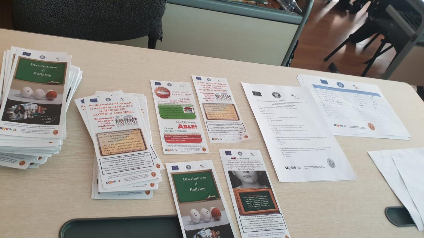 În cadrul întâlnirilor cu elevii de gimnaziu și de liceu experții din cadrul proiectului le-au vorbit despre discrimininare, formele acesteia, metode de prevenție și de intervenție. De asemenea li s-au distribuit elevilor pliante, flyere cu informații despre discriminare și bullying, tricouri și șepci cu mesajul campaniei, pentru a-i încuraja să devină la rândul lor promotori ai anti-discriminării. În cele 3 zile de campanie prin școli am discutat cu peste 500 de elevi, care au fost receptivi la mesajul campaniei noastre și sperăm ca pe viitor să fie și mai toleranți și mai sensibili la această problematică.