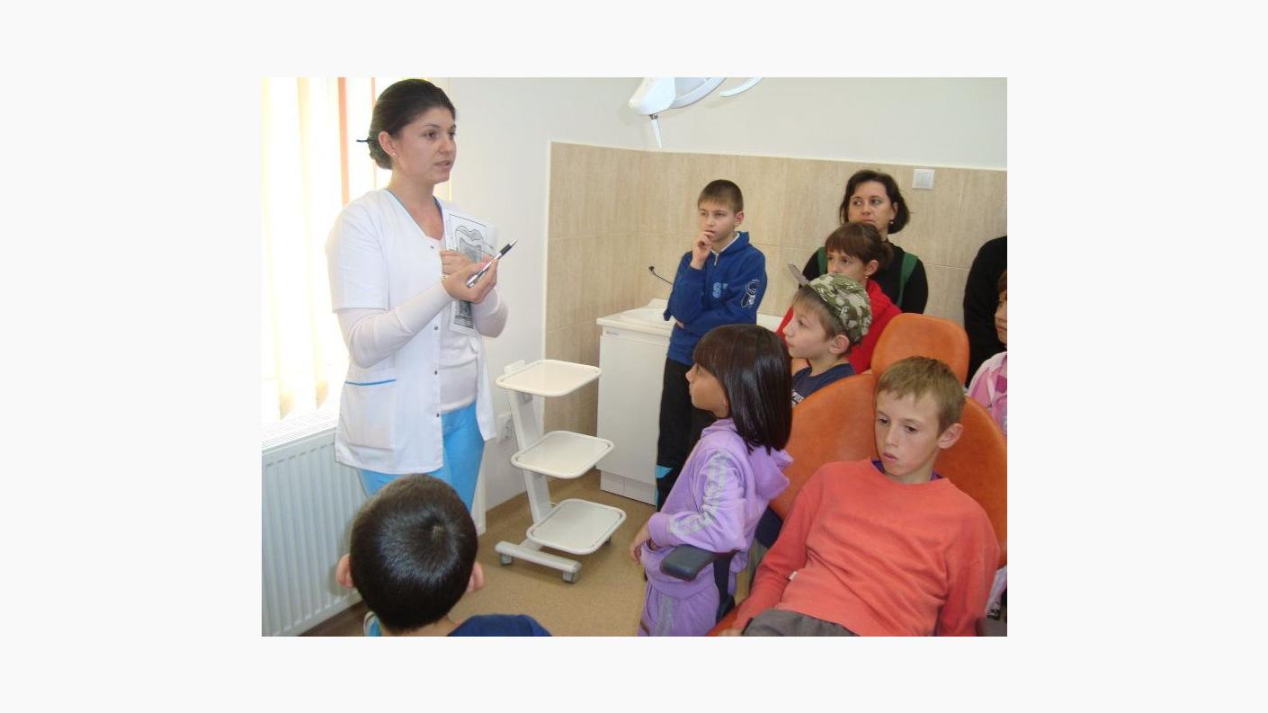 De asemenea, copiilor le-a fost prezentat cabinetul de stomatologie din incinta Fundaţiei „Episcop Melchisedec”, datotat cu aparatură modernă, precum şi instrumentele utilizate în prevenirea cariilor dentare. Totodată, micuţii au primit câte un chit de igienă ce conţine 4 periuţe, 4 paste de dinţi , 2 prosoape, 2 săpunuri.