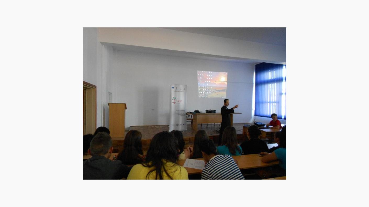 La susținerea făcută la acest liceu, s-au prezentat de Pr. Liviu Burlacu și Pr. Ionuț Căsăneanu materiale video, planșe și materiale demonstrative, în cadrul prezentării adresându-se întrebări și oferindu-se răspunsuri pe tema acestei problematici cu care se confrunta tot mai frecvent comunitatea băcăuană.