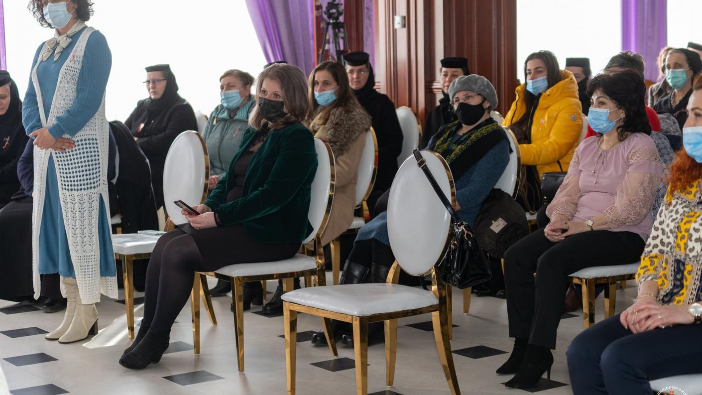 La final, Părintele Arhiepiscop Ioachim a oferit monahiilor și doamnelor prezente la eveniment un exemplar din lucrarea "Prinos de recunoștință femeii creștine - o colecție de poeme și eseuri" și flori.