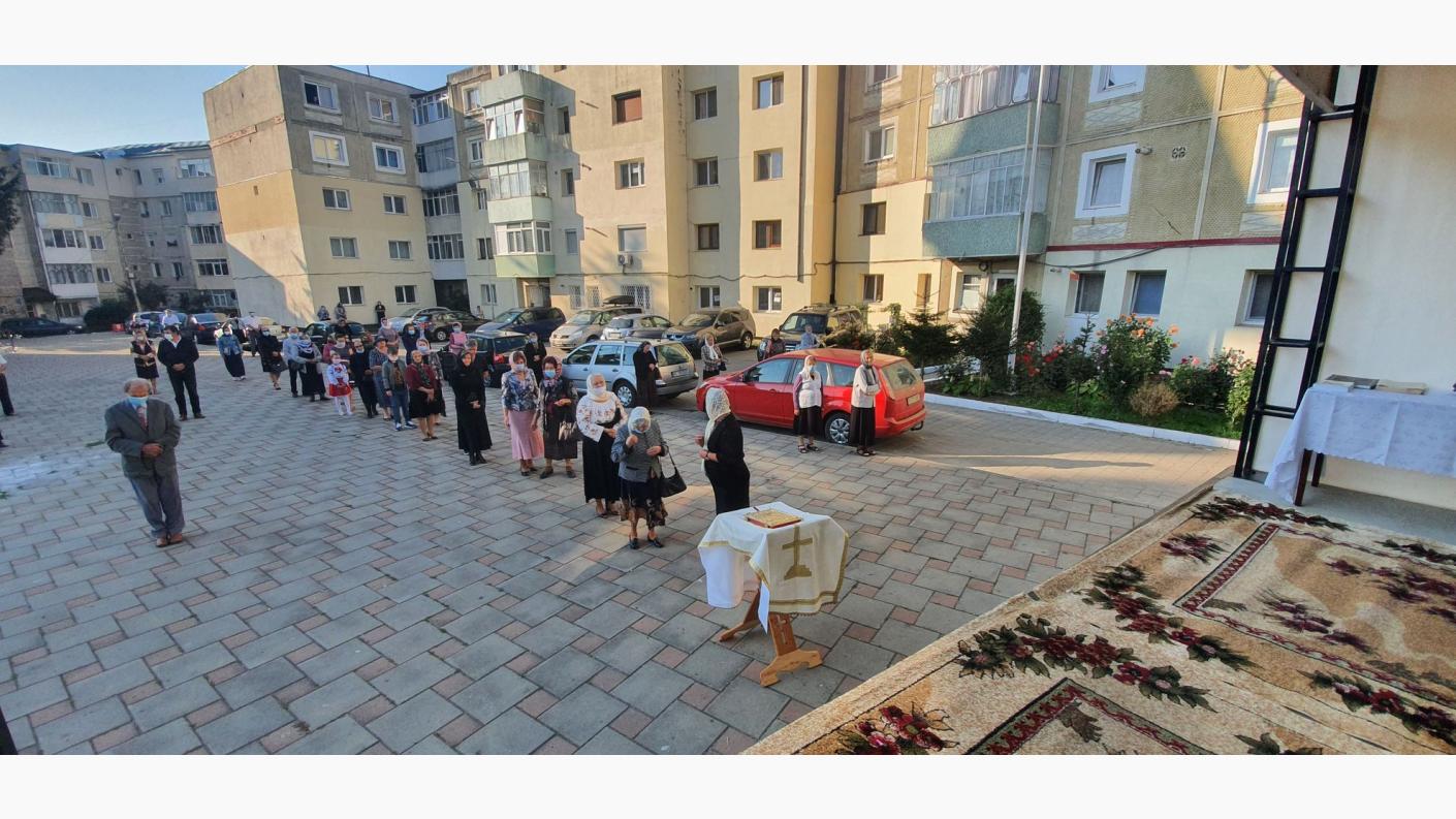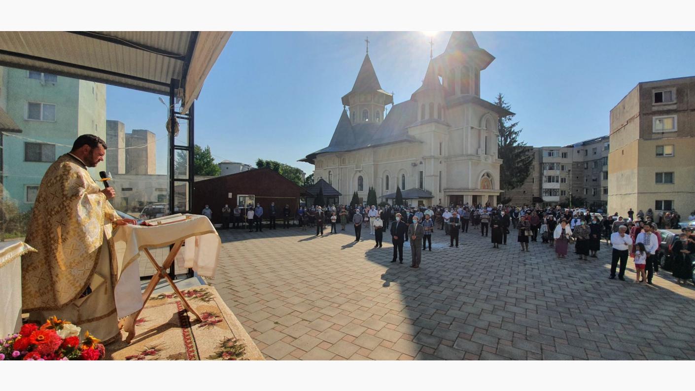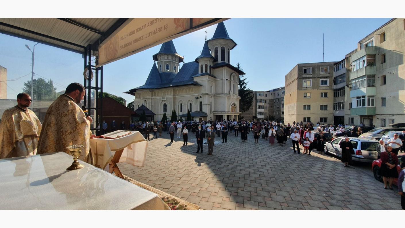 În Duminica dinaintea Înălțării Sfintei Cruci a fost oficiată Sfânta Liturghie de către părintele protoiereu Costel Mareș, al Protopopiatului Moinești, alături de un sobor de preoți pe scena amplasată în Piațeta „Sfântul Nicolae”, din imediata apropiere a lăcașului de cult.