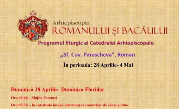Programul liturgic al Catedralei Arhiepiscopale din Roman, în perioada 28 aprilie – 4 mai 2024