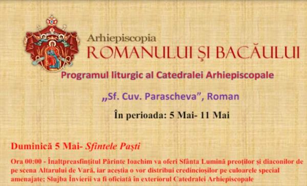 Programul liturgic al Catedralei „Sfânta Parascheva” Roman (5 mai – 11 mai)
