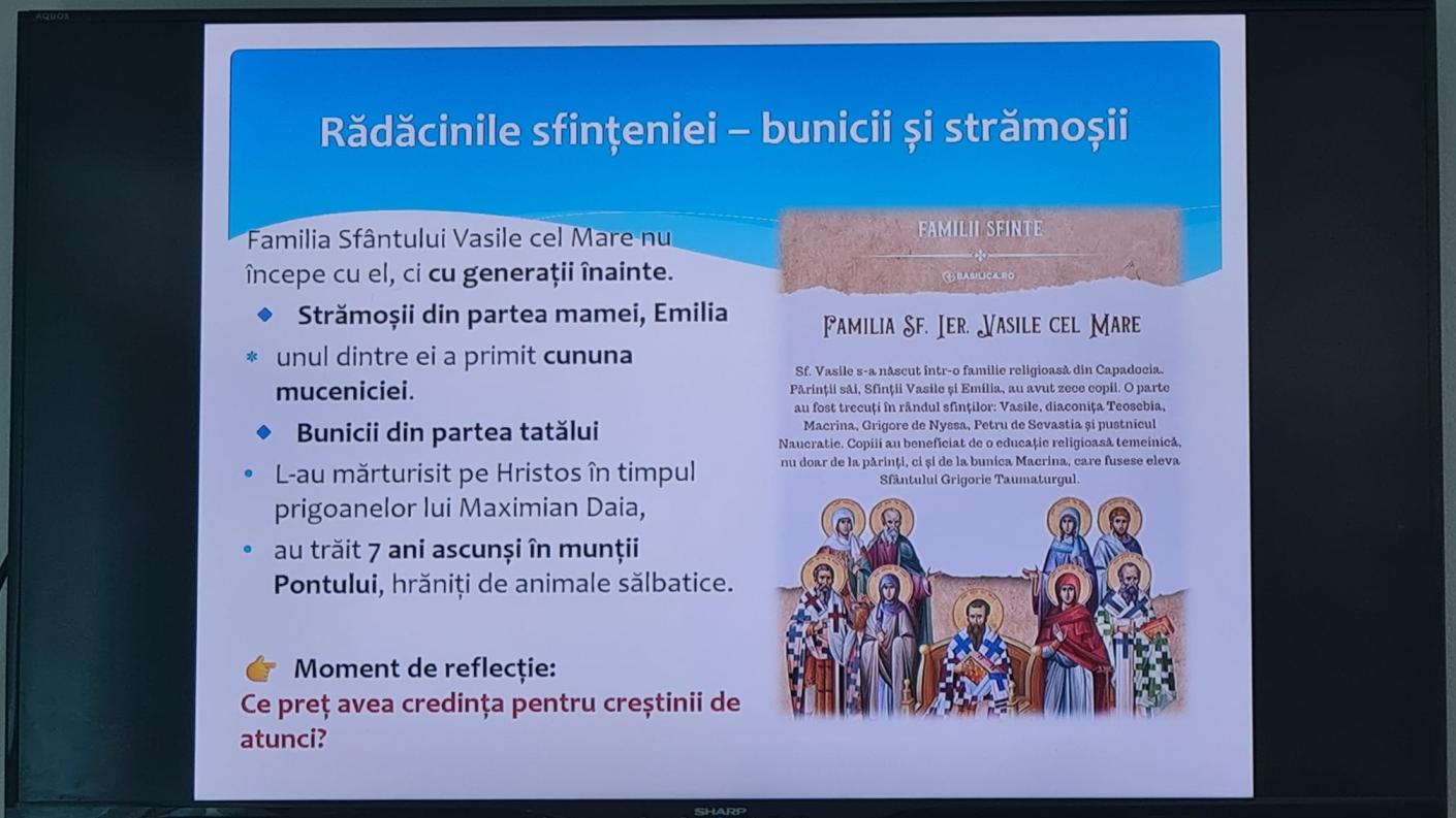 Într-o frumoasă continuitate duhovnicească, a fost reamintit faptul că familia Sfântului Vasile cel Mare rămâne una dintre cele mai luminoase dovezi că sfințenia se naște și se crește în familie. Sfânta Emilia, mama sa, împreună cu Sfânta Macrina cea Bătrână, au așezat în inimile copiilor temelia credinței vii, crescându-i în frică de Dumnezeu și în dragoste pentru viața duhovnicească. Din această familie binecuvântată au răsărit mai mulți sfinți ai Bisericii, arătând că o mamă credincioasă poate deveni izvor de sfințenie pentru întreaga lume.