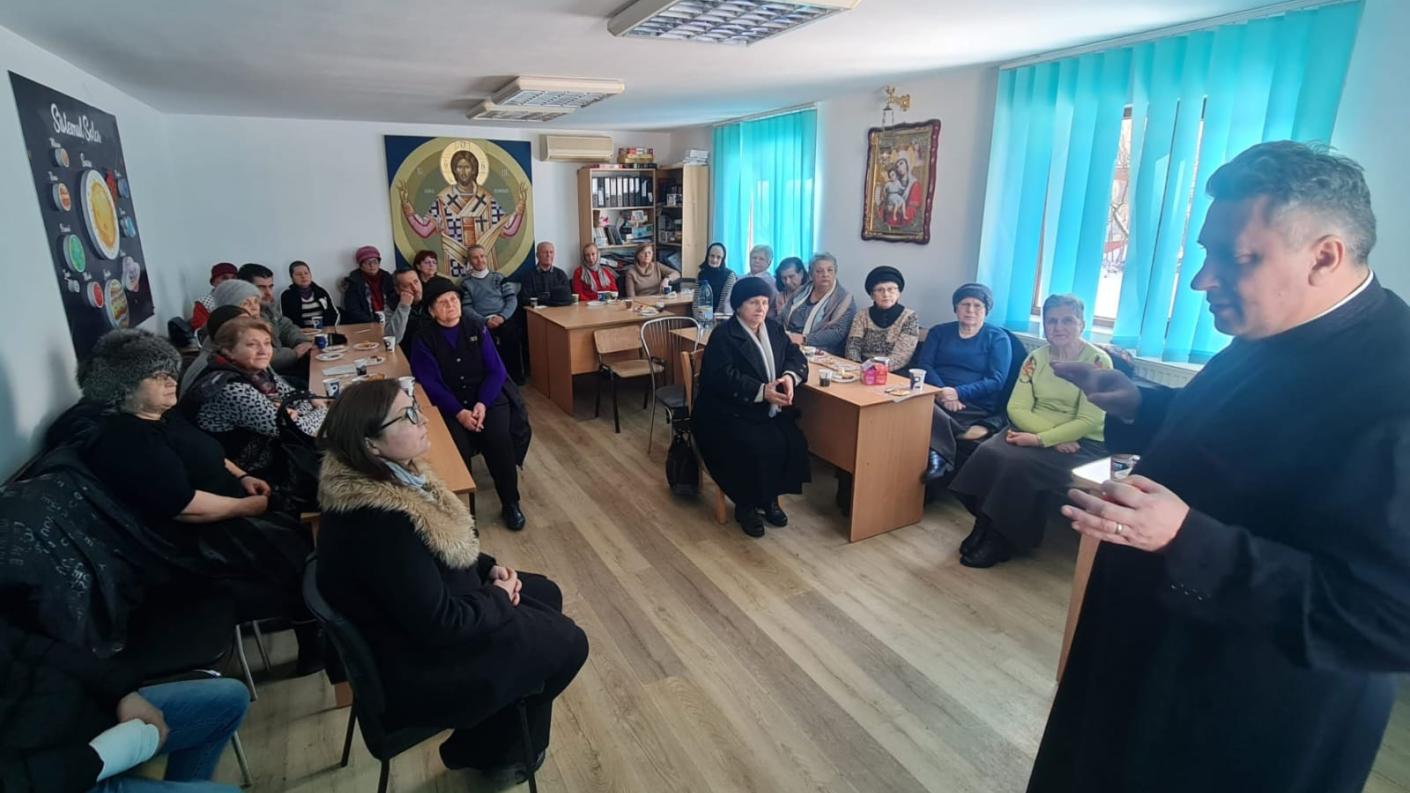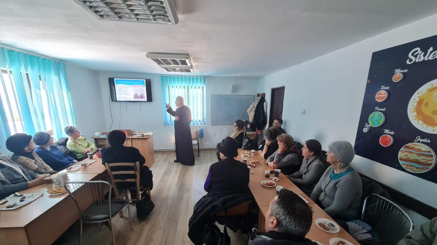 Joi, 19 martie 2026, cu binecuvântarea Înaltpreasfințitului Părinte Arhiepiscop Ioachim, la Centrul social al Parohiei Ortodoxe Lazaret – Bacău, în Luna pentru Viață și în cadrul activităților Grupului Seniorilor Lazareteni, a continuat seria de cateheze dedicate Anului Omagial al pastorației familiei creștine, desfăşurate sub egida programului catehetic-misionar implementat în Protoieria Bacău, intitulat „Familia creștină – spațiu al iubirii și sfințirii”. Invitatul din această săptămână a fost părintele Mihai-Flavius Balaban, slujitor al Parohiei „Sfinții Trei Ierarhi” Bacău.