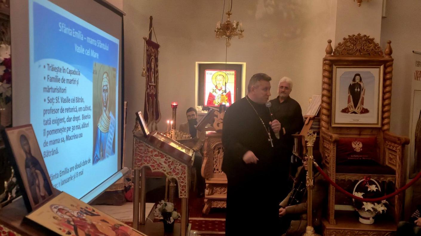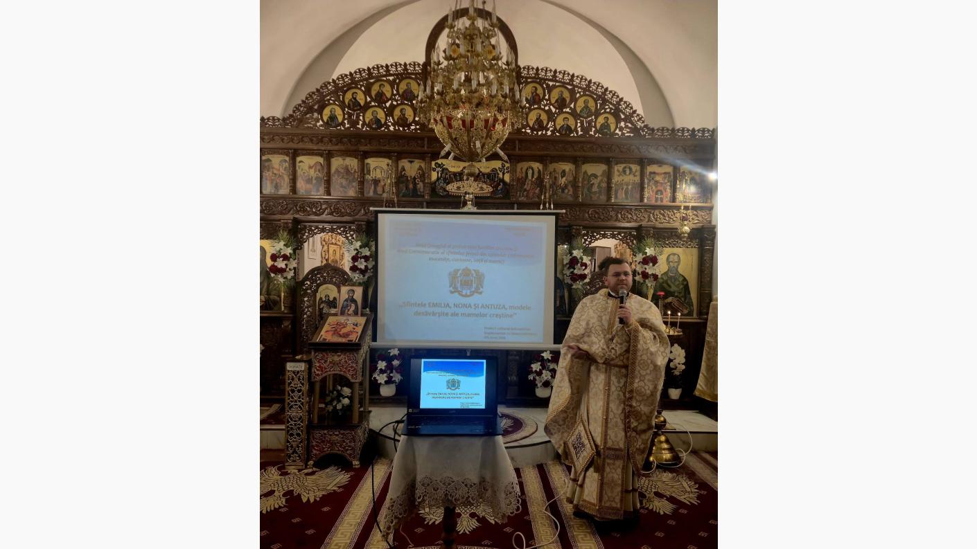 În cuvântul său, părintele invitat a evidențiat rolul fundamental al mamei în formarea morală și duhovnicească a copiilor, prezentând chipurile luminoase ale mamelor Sfinților Vasile cel Mare, Grigorie Teologul și Ioan Gură de Aur drept repere autentice de credință vie, jertfelnicie și educație creștină. Sfânta Emilia a crescut o familie de sfinți, Sfânta Nona a sfințit familia prin rugăciune și răbdare, iar Sfânta Antuza a transformat, prin credință, suferința în jertfă roditoare. Astfel, cei prezenţi au putut realiza că mama este primul teolog, casa este prima biserică, iar exemplul personal rămâne cea mai puternică lecție.
