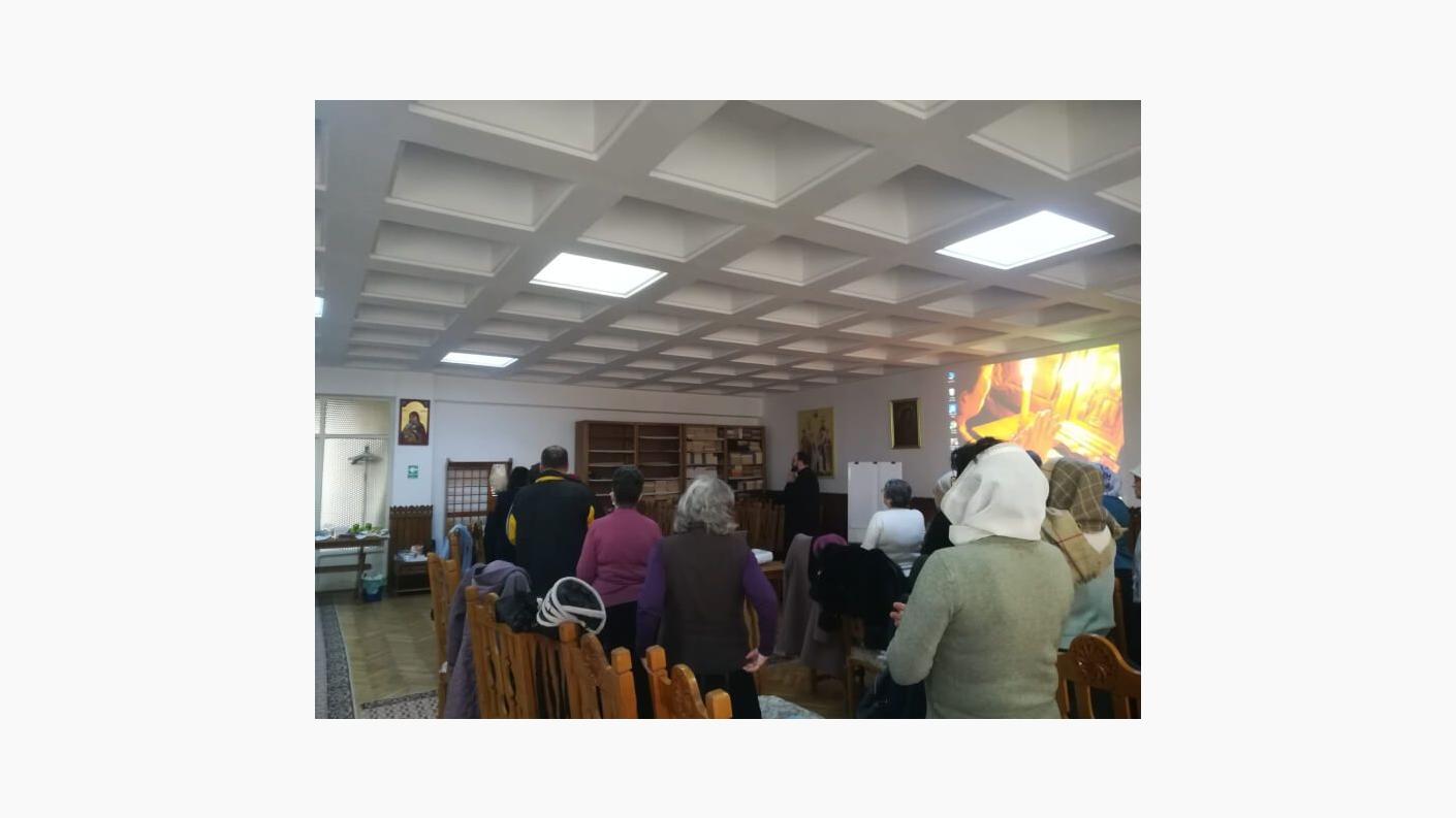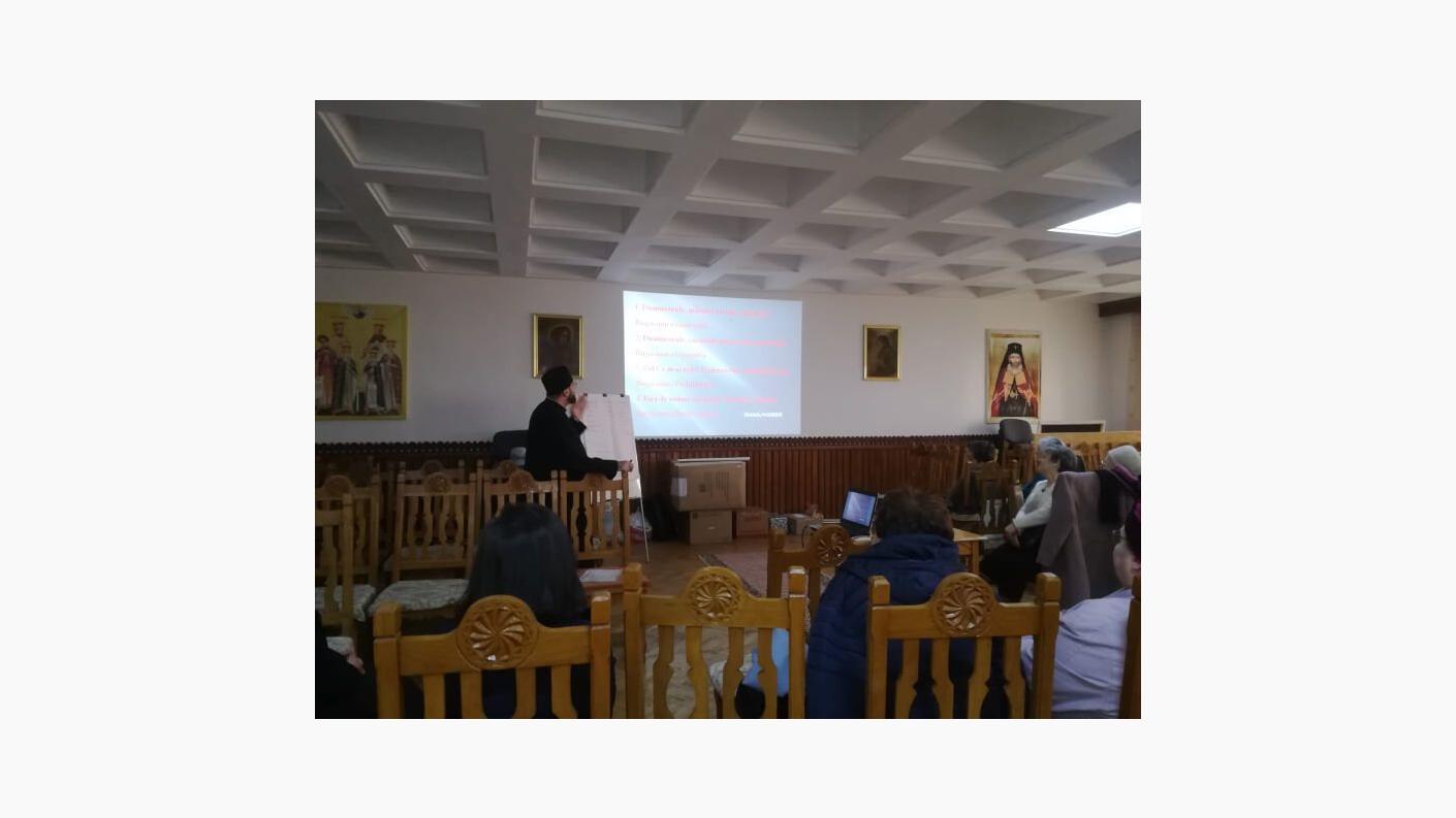 Joi, 08.04.2021, la invitația părintelui protoiereu Eugen-Ciprian Ciuche, membrii Centrului de Socializare pentru Vârstnici al Parohiei Lazaret din Bacău s-au deplasat la sediul protopopiatului pentru a participa la o cateheză susținută de preotul Bogdan Hărăbor.