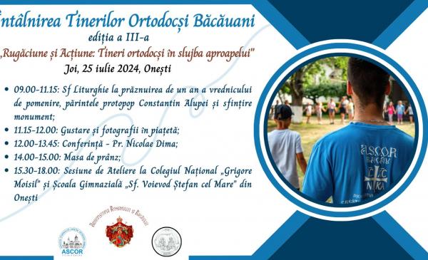 În perioada 23-26 iulie 2024, Asociaților Tinerilor Ortodocși Români din Onești și Protopopiatul Onești sunt gazdele și organizatorii celei de-a...
