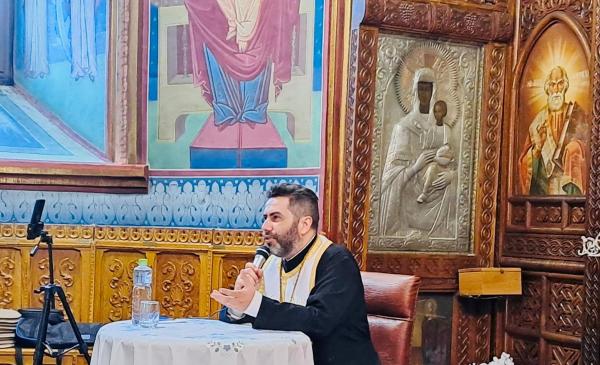 Părintele profesor Mihail Burlacu a susținut o conferință la Comănești