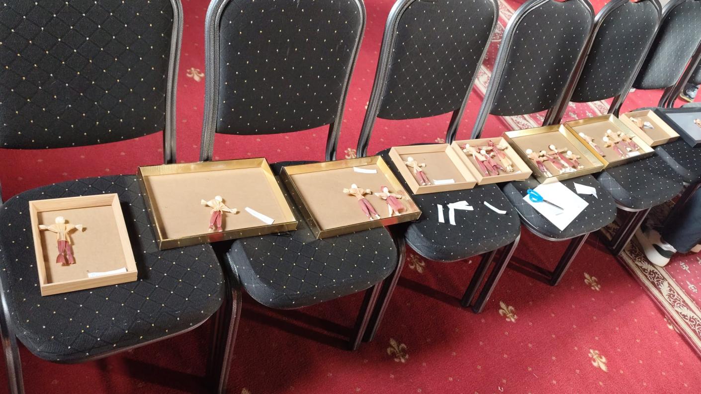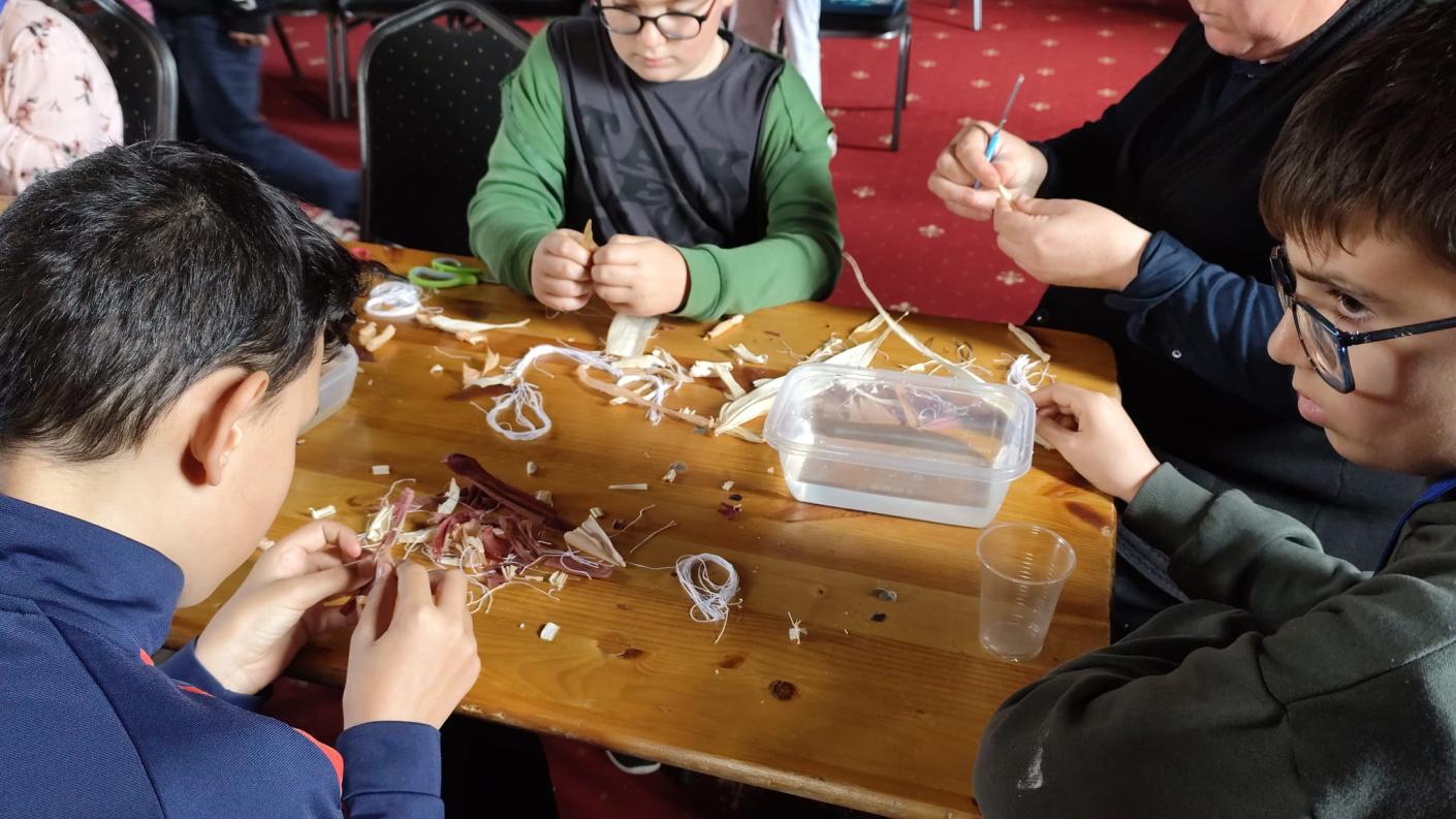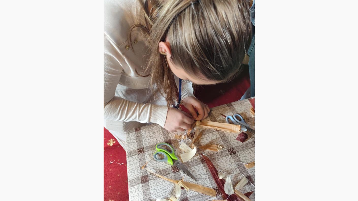 Continuarea catehezei a însemnat bucuria grupului catehetic de a fi din nou împreună într-un atelier meșteșugăresc, alături de doamna preoteasă Andreea Roncea, meșter popular în cadrul Asociației Meșterilor Populari din Moldova - Iași, iubitoare a lemnului, sforii și pănușii.
