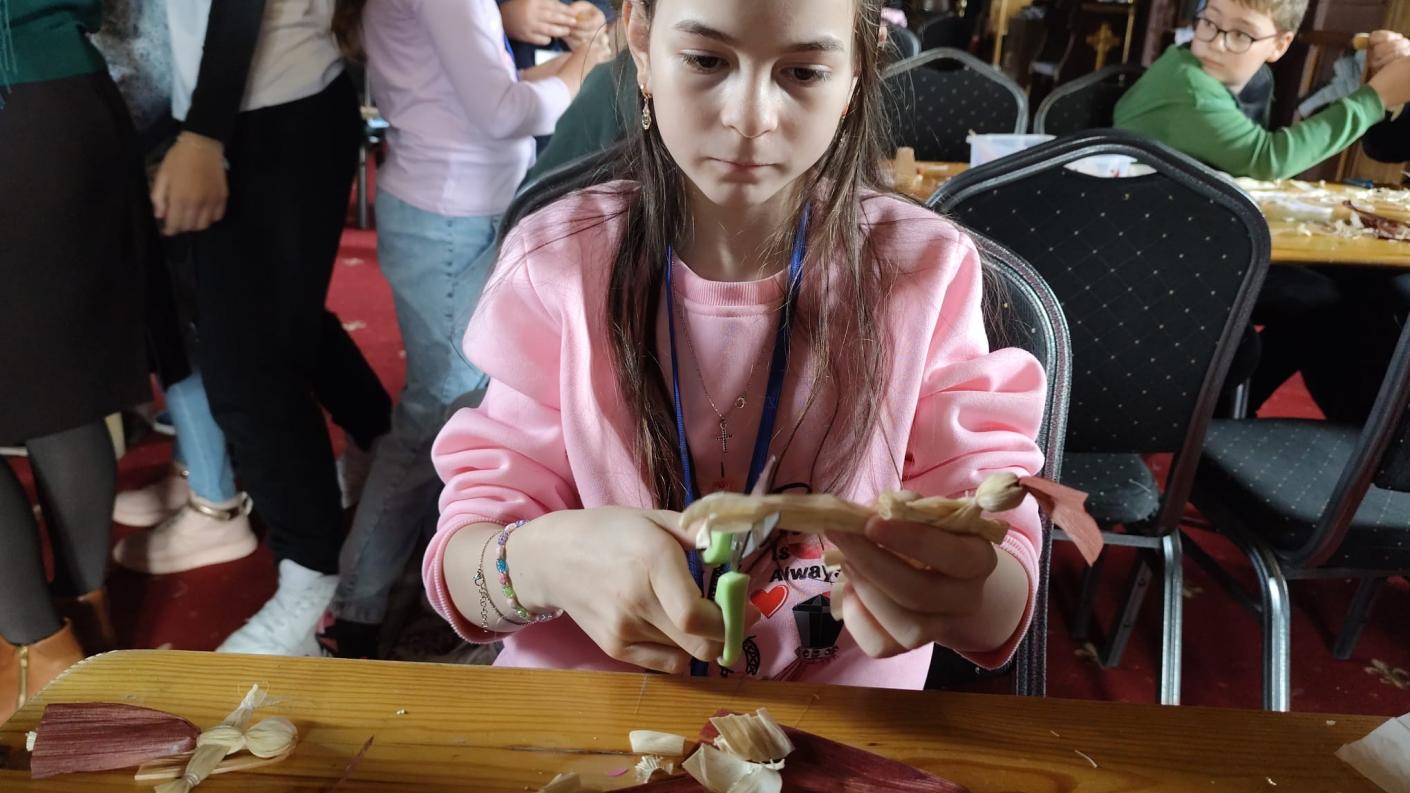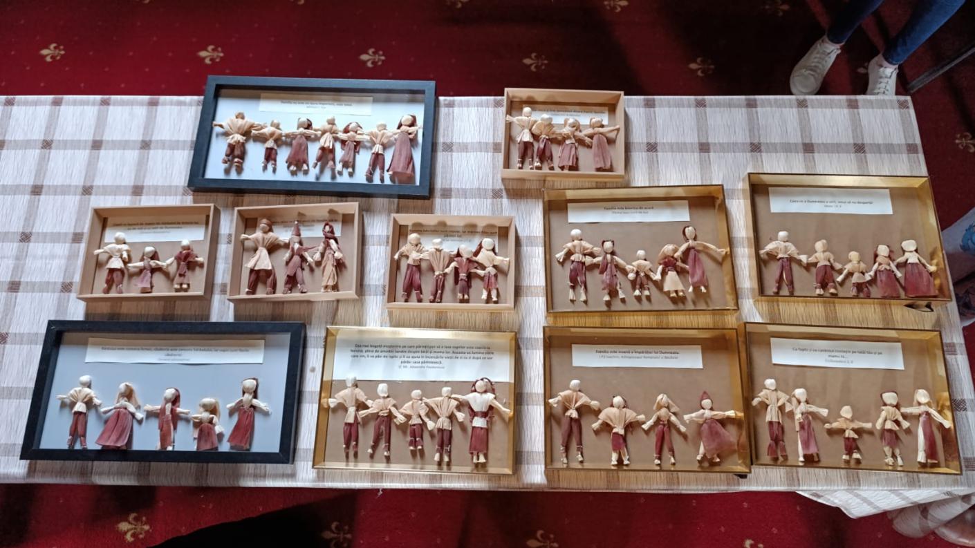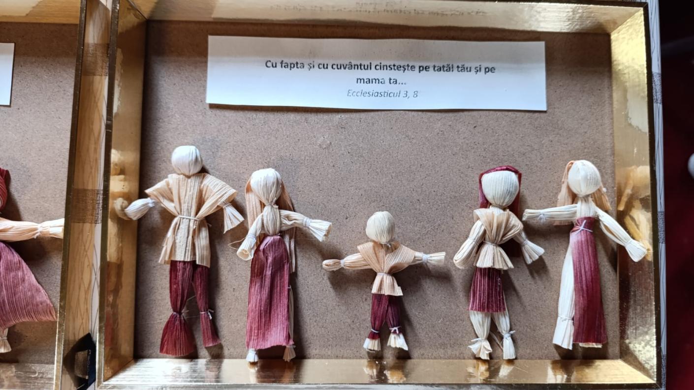 Aceasta i-a inițiat pe copii în meșteșugul împletiturilor din pănușe de porumb, ajutându-i să făurească fiecare tabloul familiei personale. Grupați în funcție de cele 11 familii – deoarece în grupul catehetic sunt și frați și surori –, alături și de alți voluntari, și-au conturat, în funcție de vârstă și închipuirea lor, familia în care Dumnezeu i-a așezat, meșteșugite fiind astfel 11 tablouri, fiecare unic prin specificul familiei respective, pe care luându-le acasă, copiii și tinerii au dus cu ele bucuria lucrului făcut cu mâna lor și ca un dar al recunoștinței copilului pentru părinții ce l-au născut și l-au crescut. Bucuria a fost cu atât mai mare prin faptul că i-au „plăsmuit” pe cei dragi prin această activitate. Pentru o parte din copii, astfel de ateliere le sunt cunoscute din cadrul taberei de vară organizate anual în parohie, numită generic „Împletim vacanța nod cu nod”.