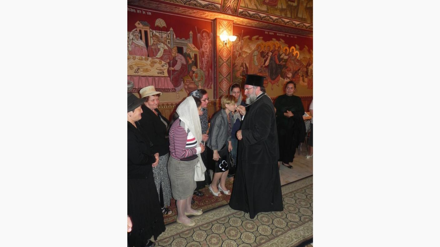 Preasfințitul Părinte Episcop Ioachim Băcăuanul este și un profesor de excepție pentru catehizarea celor ce vor să pătrundă în tainele teologiei. De acest lucru s-au lămurit, încă o dată, toți cei prezenți la seara cultural-duhovnicească organizată vineri, 22 august, la Biserica ”Sf. Împărați” din municipiul Bacău, gazdă generoasă grație preoților Ioan Chiribău și Adrian Ciobanu, care au organizat impecabil acest eveniment. Într-un spațiu consacrat prin pictura sa admirabilă, au continuat dialogurile lunare ale ierarhului cu preoții și credincioșii dornici să-și îmbogățească atât cultura religioasă cât și viața spirituală. Începând cu orele 19.00, băcăuanii au participat la o seară catehetică având ca subiect una dintre temele fundamentale ale teologiei ortodoxe, respectiv Taina Sfintei Împărtășanii, plecând de la textul Sfintei Evanghelii din Duminica a VIII-a după Rusalii, cel în care se menționează înmulțirea pânilor. ”M-am aplecat cu acrivie asupra acestui text din Evanghelia Sfântului Matei, coroborat cu textele celorlalți evangheliști, în care am văzut universul euharistic care este universul Liturghiei, pentru a găsi imagini noi în interpretarea sa. Noi avem darul de a participa activ la acest univers euharistic, în care putem intra prin metanoia, printr-o schimbare, hrănindu-ne cu tainele care ne pun în legătură cu Dumnezeu”, a menționat Preasfințitul Ioachim. Prezentarea textului sacru, apoi exegeza acestuia din perspectiva ierarhului, a fost completat cu luări de cuvânt din partea preoților prezenți și a credincioșilor care, la final, și-au manifestat bucuria de a fi participat la un astfel de eveniment.