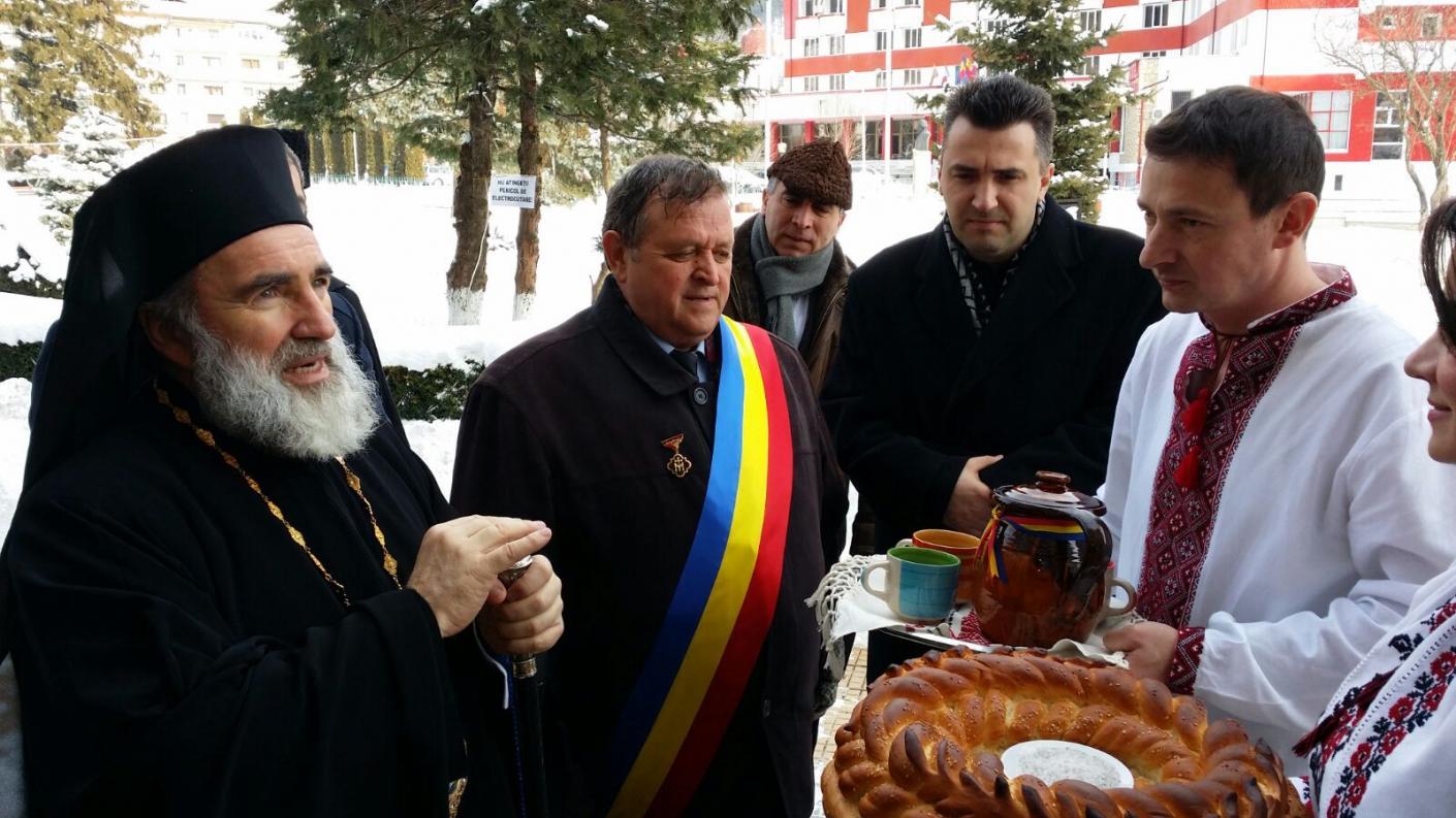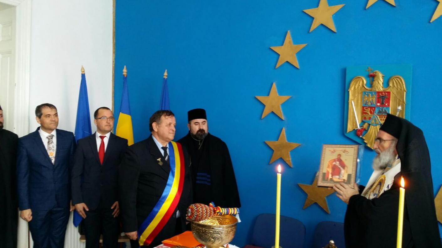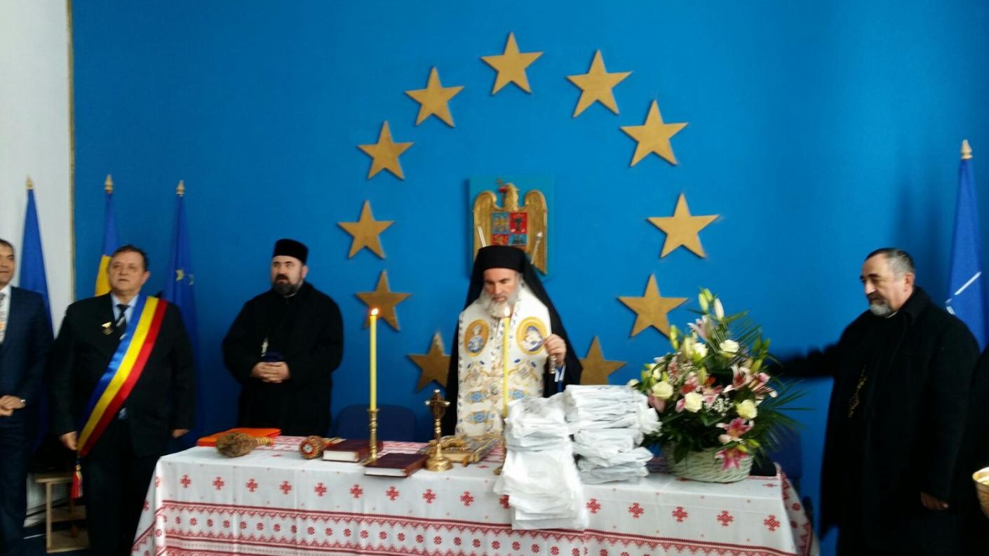 Imediat după aceasta, Înaltpreasfințitul Părinte Ioachim a mers la sediul primăriei din Târgu Ocna, unde a sfințit clădirea instituției rostind totodată rugăciuni de binecuvântare pentru angajații acesteia, cărora le-a oferit distincții de vrednicie și iconițe cu Sfânta Parascheva, ocrotitoarea Eparhiei.