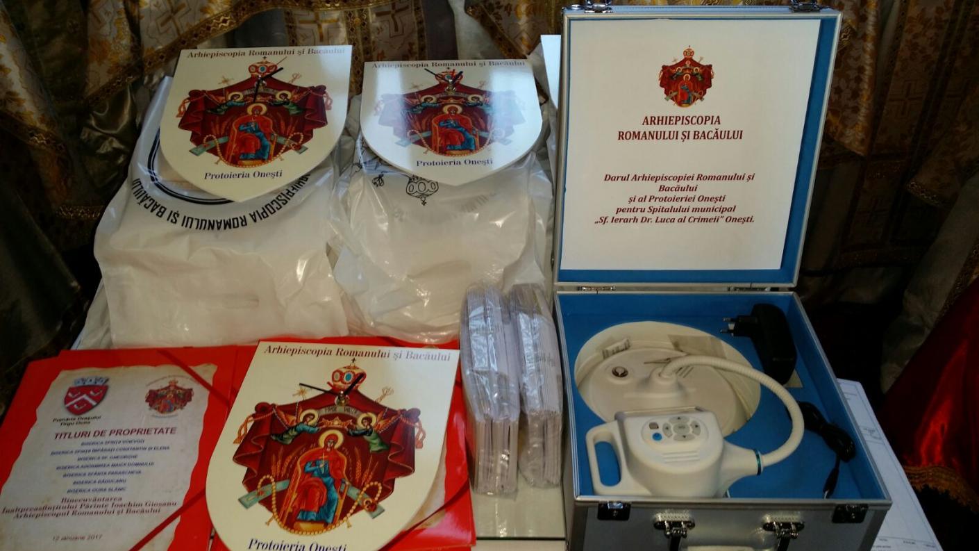 Apoi, din partea Arhiepiscopiei Romanului și Bacăului, Spitalul din Onești “Sfântul Luca al Crimeii” a primit pentru Secția de Pediatrie un dispozitiv medical performant, achiziționat cu fondurile obținute din colecta organizată cu prilejul concertului de Crăciun oferit de Corala „Armonia”, și oferit de către Ierarh managerului spitalului, care a fost prezent, de asemenea, la Sinaxa preoților oneșteni.