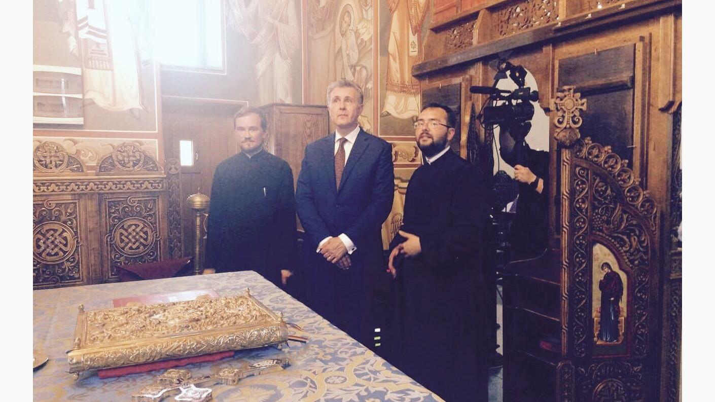 Acum, părintele protopop Ioan Bârgăoanu a înmânat din partea Înaltpreasfințitului Părinte Arhiepiscop Ioachim, ca semn de prețuire, daruri simbolice aparte, fiind oferite câteva icoane deosebite oficialităților prezente. La încheierea manifestărilor, Principele Radu și ambasadorul SUA s-au întors la Onești.