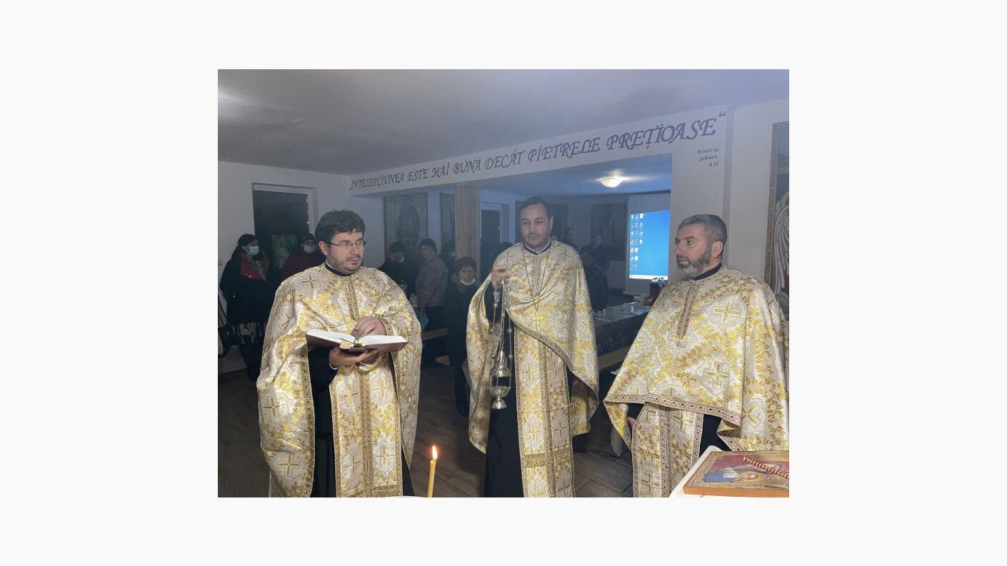 Programul duhovnicesc a început cu slujba de sfințire a apei, continuând cu Taina Sfântului Maslu. După aceasta, preoții, alături de enoriași, au mers în casa de prăznuire a parohiei acolo unde părintele paroh desfășoară încă din luna februarie a anului 2021 activități catehetice cu cei 40 de copii din cadrul Centrului catehetic ocrotit de către Sfântul Nectarie al Eghinei. La finalul slujbei de binecuvântare a locației care va deservi de acum înainte și întâlnirile centrului de socializare, a urmat o agapă creștină în cadrul căreia părintele Lucian Dima a vorbit credincioșilor despre viața Sfintei Ecaterina. Prin intermediul filmelor și a imaginilor prezentate, dar și prin cuvântul părintelui, credincioșii au aflat aspecte importante din viața sfintei, dar și exemple demne de urmat în viața oricărui creștin.