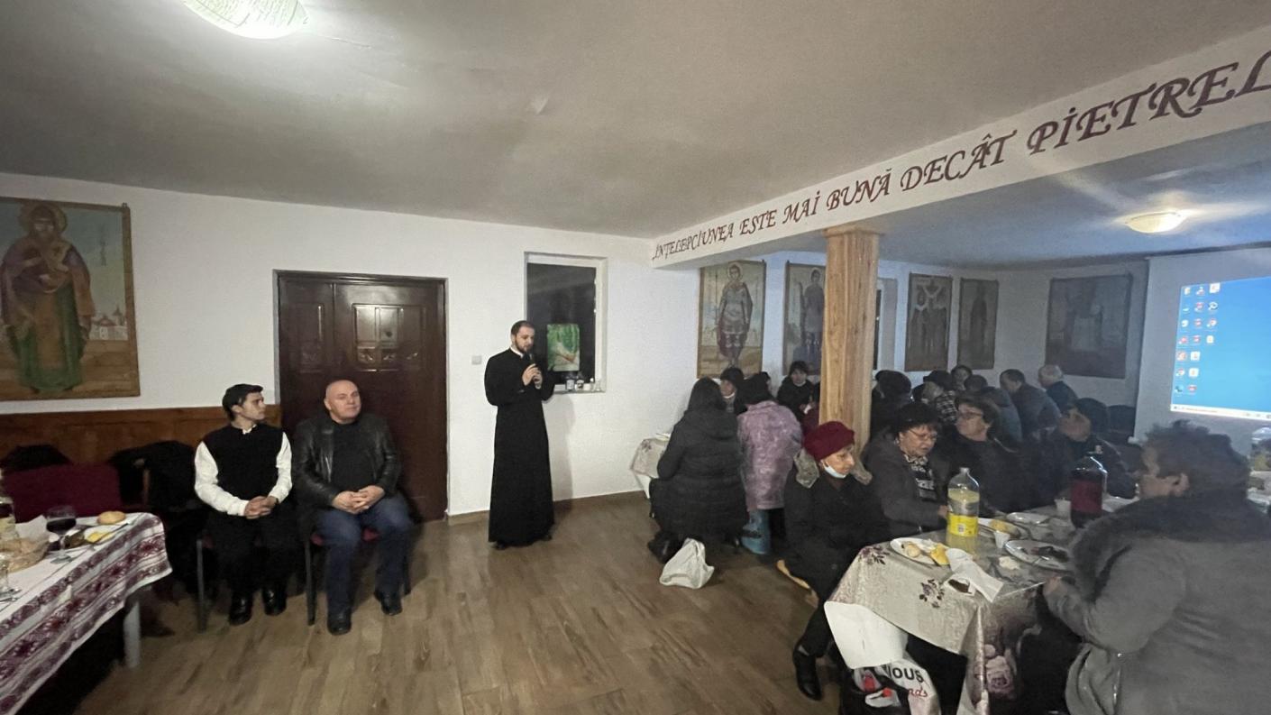 În cuvântul său, părintele protoiereu a evidențiat faptul că acest spațiu pe care casa de prăznuire îl oferă este un spațiu al enoriașilor, iar obiectivul său principal este de a deservi nevoilor parohiei. Printre aceste nevoi se numără și cea de socializare și apropiere sufletească, de aici reliefându-se și faptul că Biserica se îngrijește întotdeauna de oamenii săi, venind în sprijinul lor cu activități și programe menite să călăuzească omul în urcușul său duhovnicesc, dar și în traiul pe care îl duce în societatea civilă. De asemenea, părintele protoiereu a subliniat faptul că un centru care oferă acțiuni atât pentru copii, cât și pentru vârstnici poate iniția o activitate de tip punte între generații, în care cei mici primesc învățăturile pline de experiență ale seniorilor sau pot învăța un meșteșug de la aceștia, iar cei din urmă se pot îmbogăți sufletește din tinerețea și vivacitatea pe care le au de oferit micii creștini.
