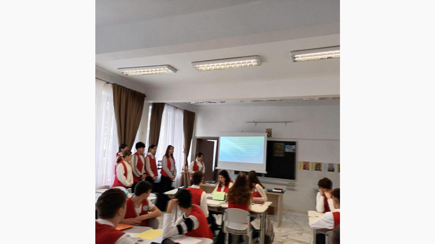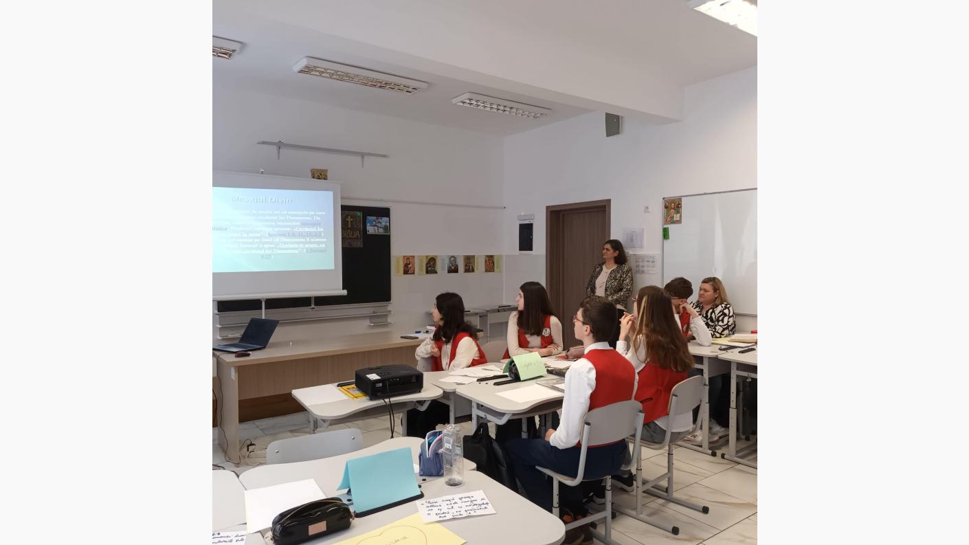 Prima parte a întâlnirii a debutat cu o lecție demonstrativă susținută de doamna profesoară Lazăr Maria Magdalena la clasa a VIII-a. Elevii au prezentat proiecte realizate la disciplina Religie, având ca teme Importanța Sfintei Scripturi în viața Creștinului și prezentarea istoricului bisericilor din împrejurimi. Aceste proiecte fac parte dintr-un Proiect Educațional mai amplu, care urmărește: