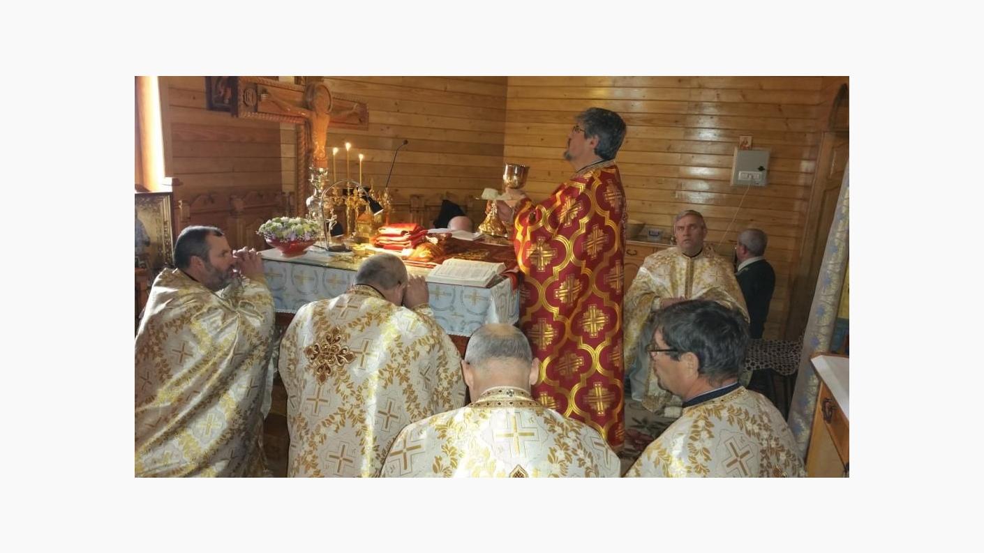 S-a săvârșit Sfânta Liturghie sub protia părintelui protoiereu Costel Mareș, răspunsurile la strană fiind date de către corala „Theotokos” a Protopopiatului Moinești.