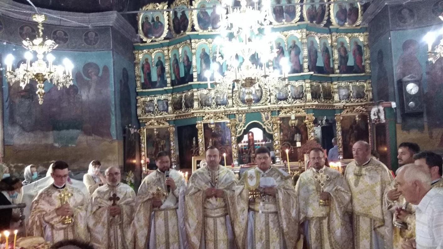 Slujba Privegherii și Sfânta Liturghie au fost săvârșite în sobor sub protia părintelui Vasile Abageru, protoiereul locului, cu respectarea condițiilor impuse de autorități.