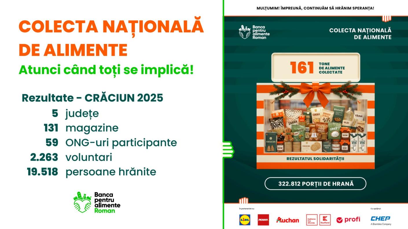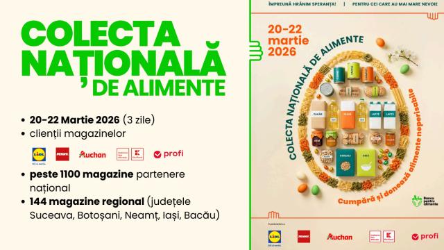 Ediția a XIV‑a a Colectei Naționale de Alimente, desfășurată în perioada 20–22 martie 2026, a adus din nou împreună comunități, voluntari și organizații dedicate sprijinirii celor aflați în dificultate. Acțiunea a fost organizată la nivel național de Federația Băncilor pentru Alimente din România (FBAR) și cele nouă Bănci Regionale pentru Alimente, în colaborare cu mii de voluntari și parteneri implicați. Campania de Paște s‑a desfășurat sub îndemnul „Împreună hrănim speranța”, încurajând gesturile simple, dar cu impact major asupra celor care se confruntă cu lipsuri.