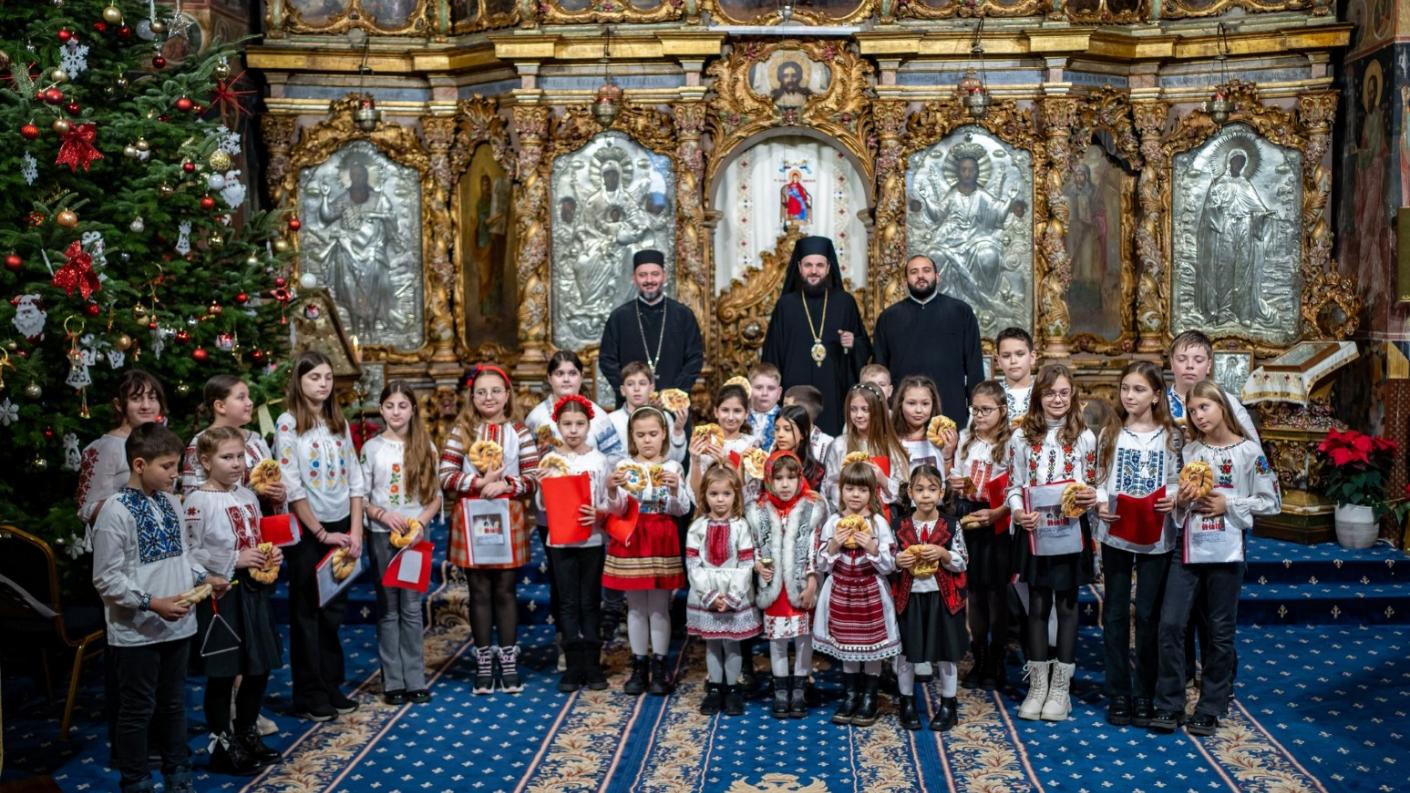 La final, toți colindătorii au primit din partea celor doi ierarhi, ca semn de binecuvântare și recunoștință, colăcei și iconițe cu Nașterea Domnului. (Mioara Ignat)